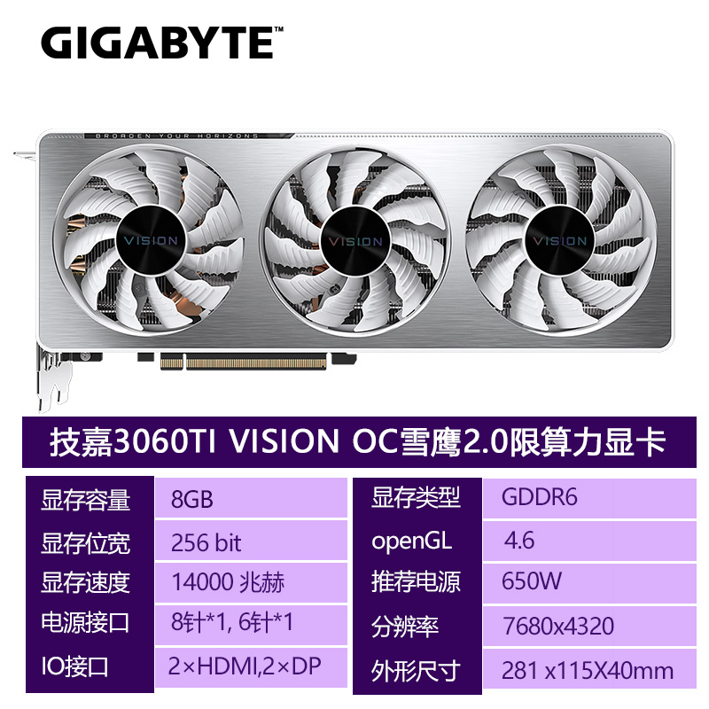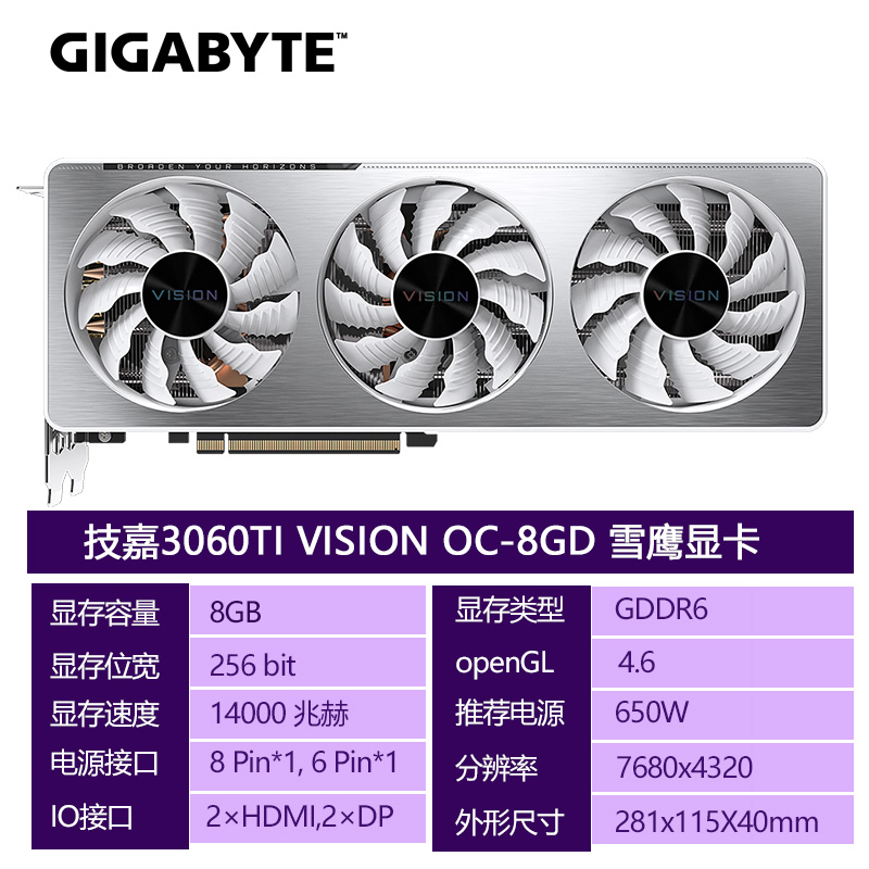 Technology Garage RTX 3060ti VISION OC 8G Snow Eagle Desktop Computer Games Host Independent Display Card