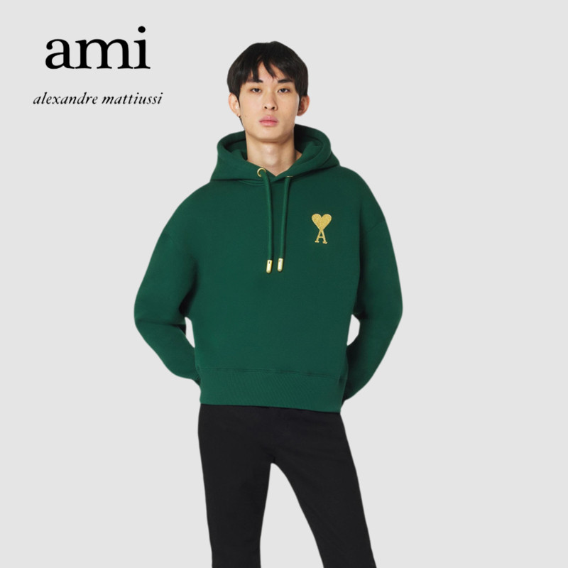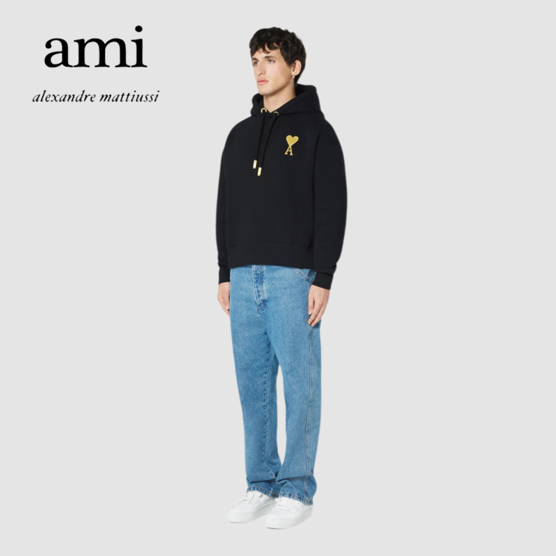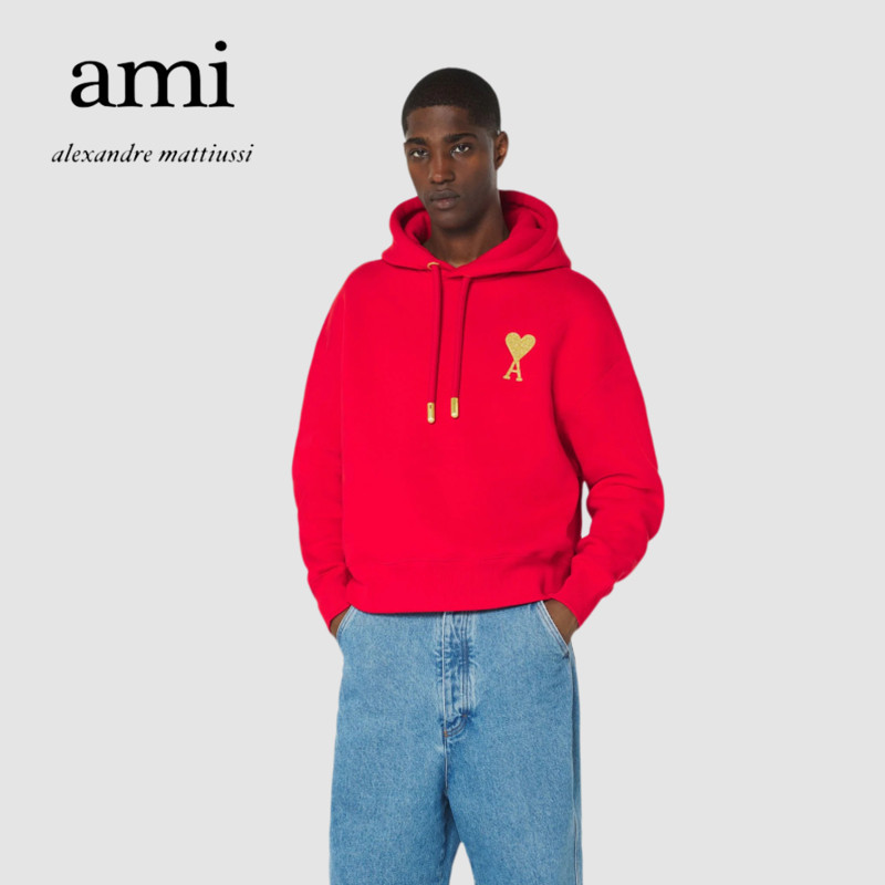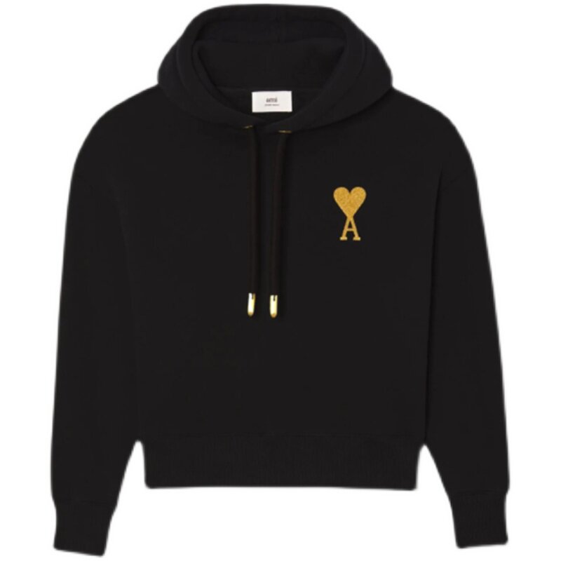 Ami Paris 21 new Christmas limited gold silk love hoodie men's and women's casual loose sweater