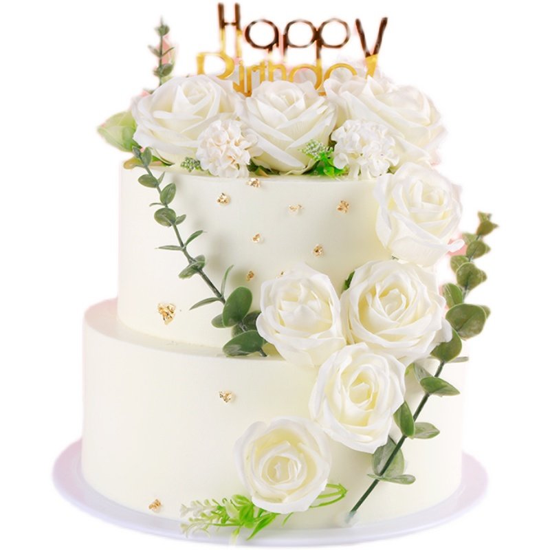 Cake Model 2022 Emulation New Mesh Red Double Layer Flower Pop Plugin Birthday Fake Cake Plastic Sample Set