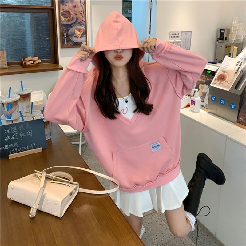 Hanging neck sweatshirt Two sets autumn and winter 2022 new Korean version design sensation small crowd V collar with cap sports jersey hanging neck back