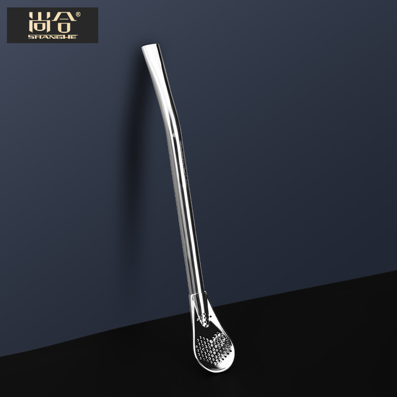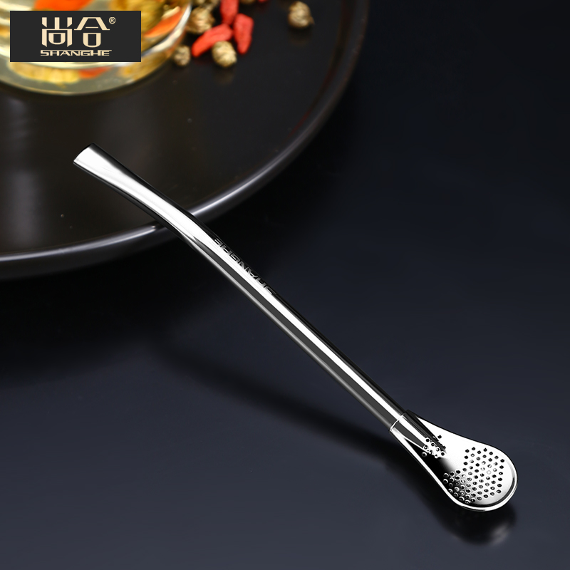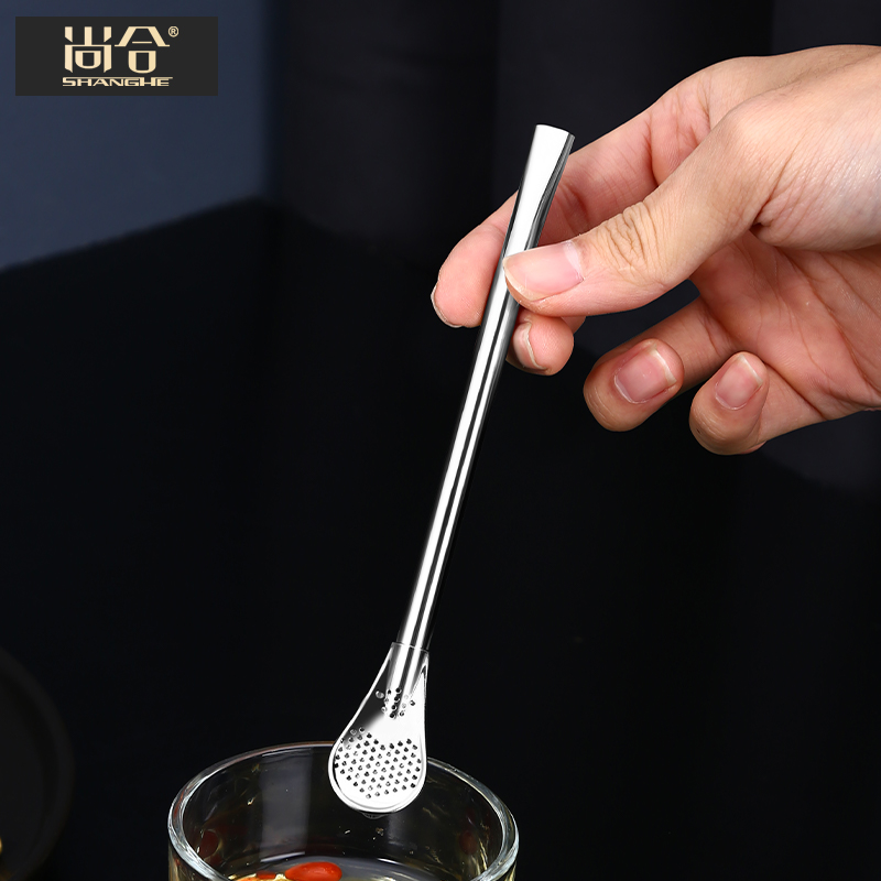Champ 304 Stainless Steel Straw Spoon Creative Filter Spoon Coffee Stirring Spoon Integrated Dual-use Filter Residue Straw