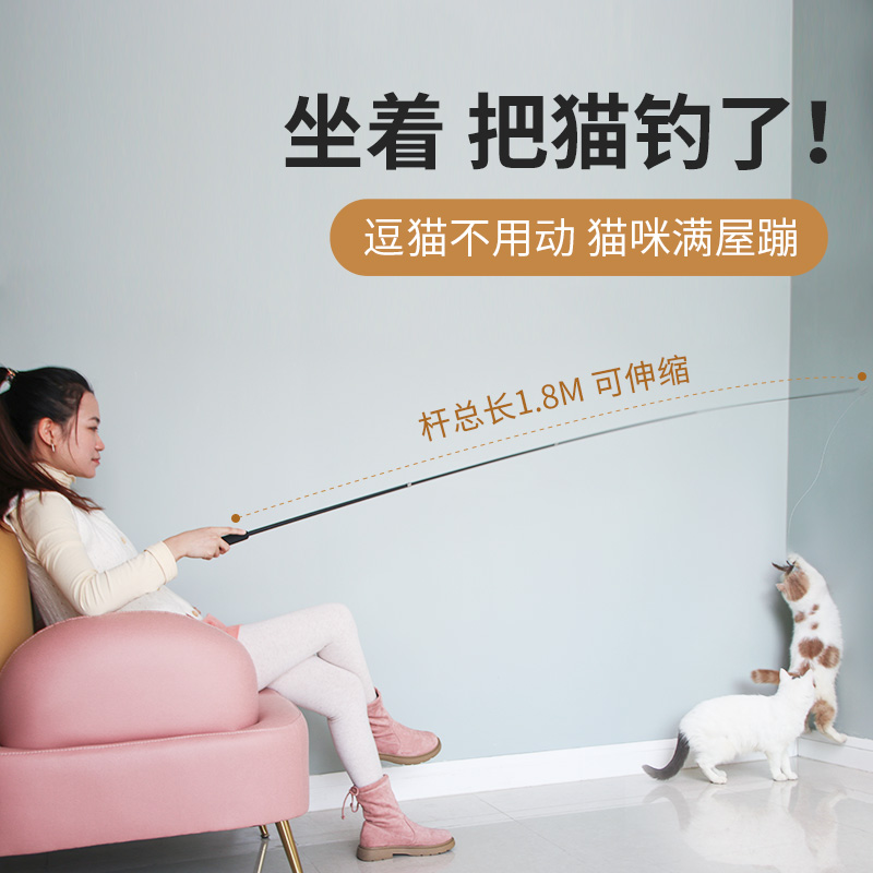 1 8 m long pole teasing cat's kitty toy supplies Self-Hi theorizer Relieving Four Sections Flex 2 Replacing Hunting Rod
