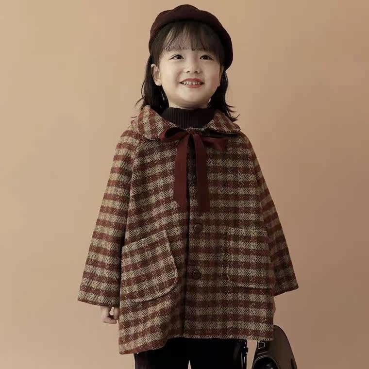Girl's jacket 2021 Winter new Korean version Trend plaid Big Clothes Kids Baby Clips Cotton Thickened Blouses