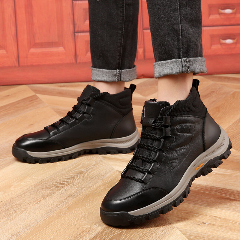 Height increasing shoes men's invisible inner height increasing men's shoes 10cm leather winter warm plus velvet cotton shoes men's father leather shoes