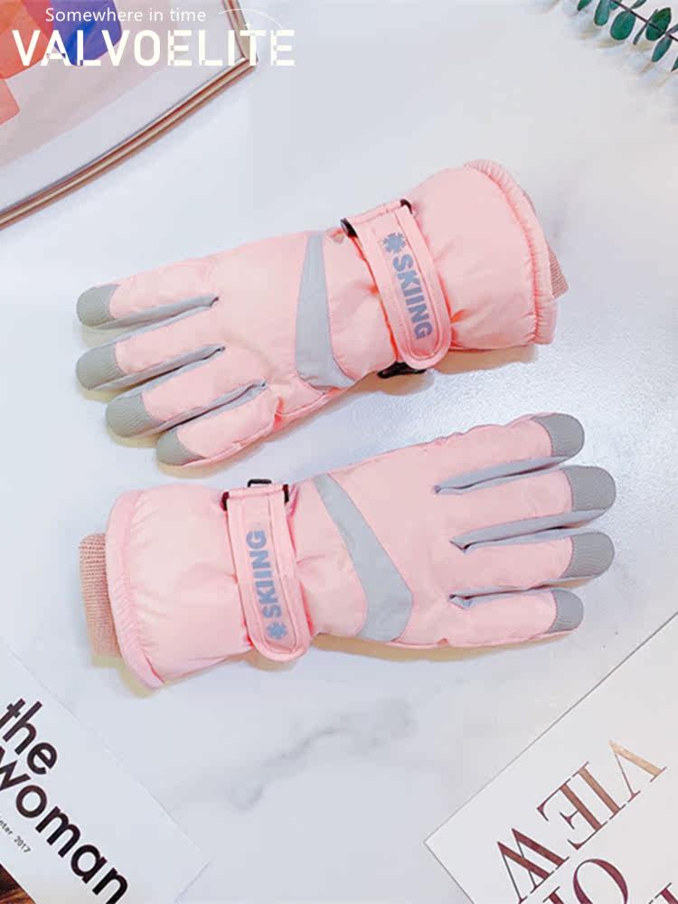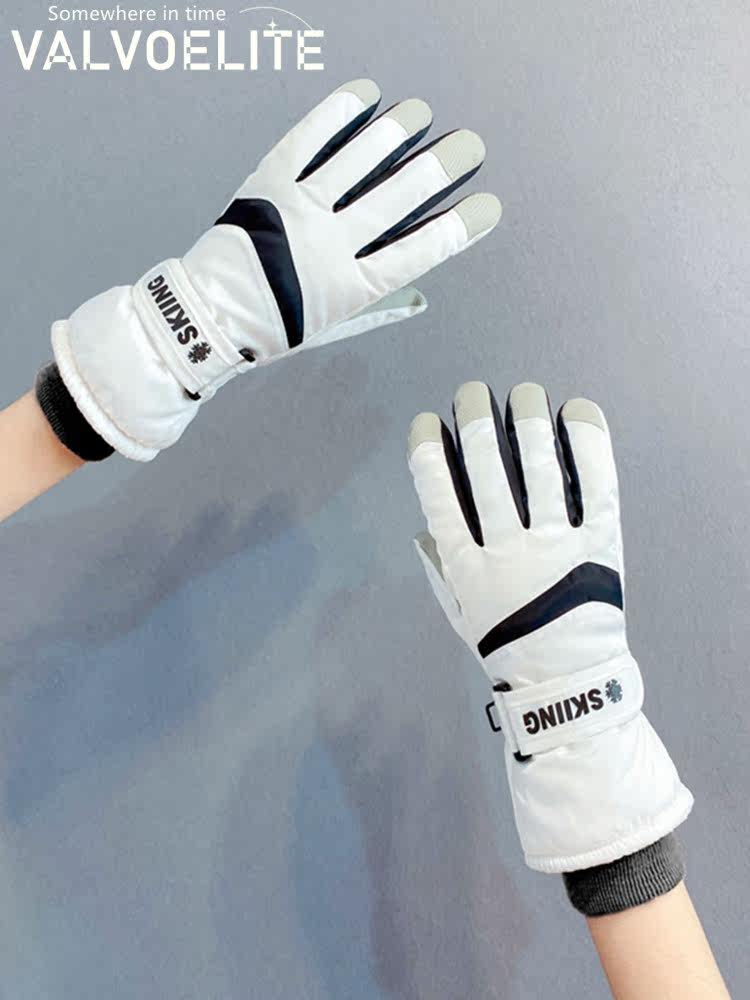 VALVOELITE Ski Gloves Female Winter High-end Touch Screen Warm Riding Locomotive Waterproof Plus Velvet Movement All Finger