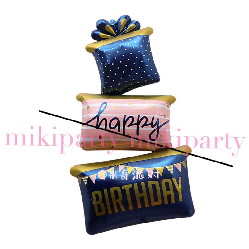 Korean birthday party decoration props toy three-layer birthday gift box shape cartoon aluminum film balloon
