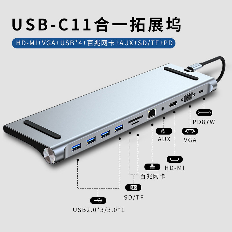 New USB-c hub expands dock to usb3 0 pd vga 11 fit 1 desktop bracket type expansion dock