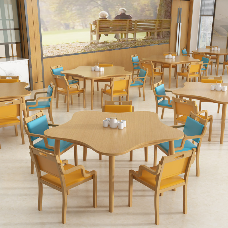 Customized aging furniture dining table chairs nursing home nursing home canteen dining room solid wood tables and chairs elderly apartment chairs