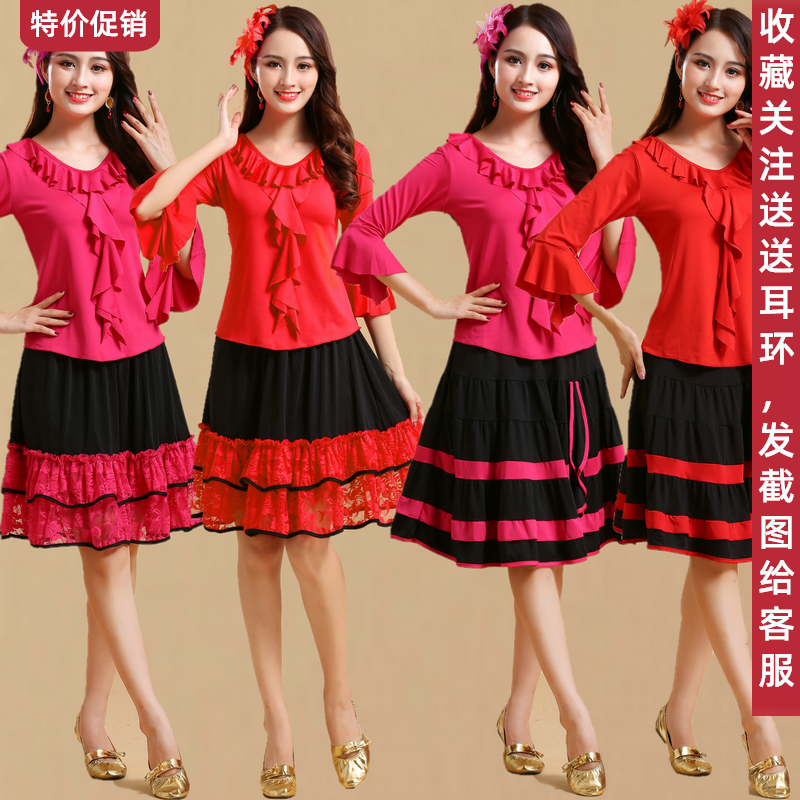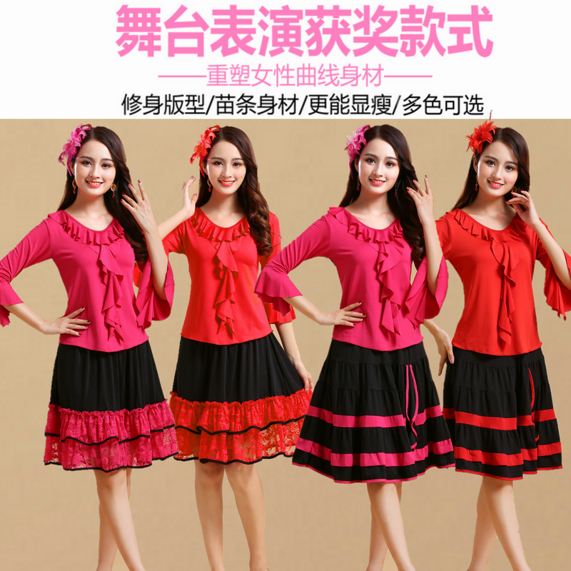 Square Dance Costume New Yangko Dance Costume Folk Dance Performance Costume Lotus Leaf Middle Sleeve Short Sleeve Jacket Skirt Set
