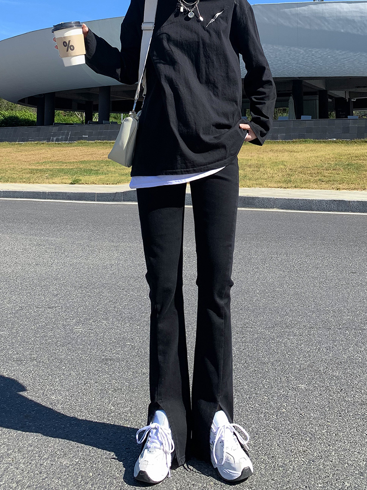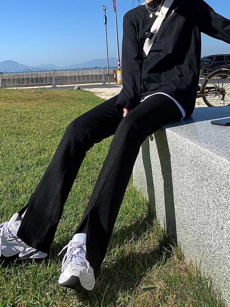 RJVO micro-launched slit jeans women's 2022 autumn and winter high waist loose slim straight retro split fork mopping pants