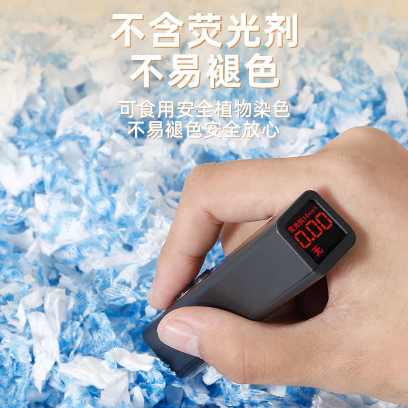 Dust-free Paper Cotton-Blue and White (450 gr) photographed with 9 folded degreasing cotton balls-Fun Colour-about 100 Pellets Degreased-cotton Balls-pure white-about 100 grains