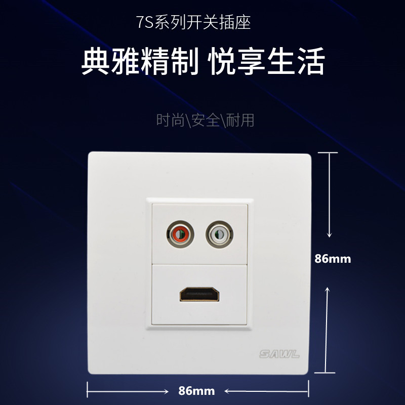 HDMI with red white AV lotus audio socket 86 Type of concealed multimedia panel Home 4K HD Line TV plugged-Taobao