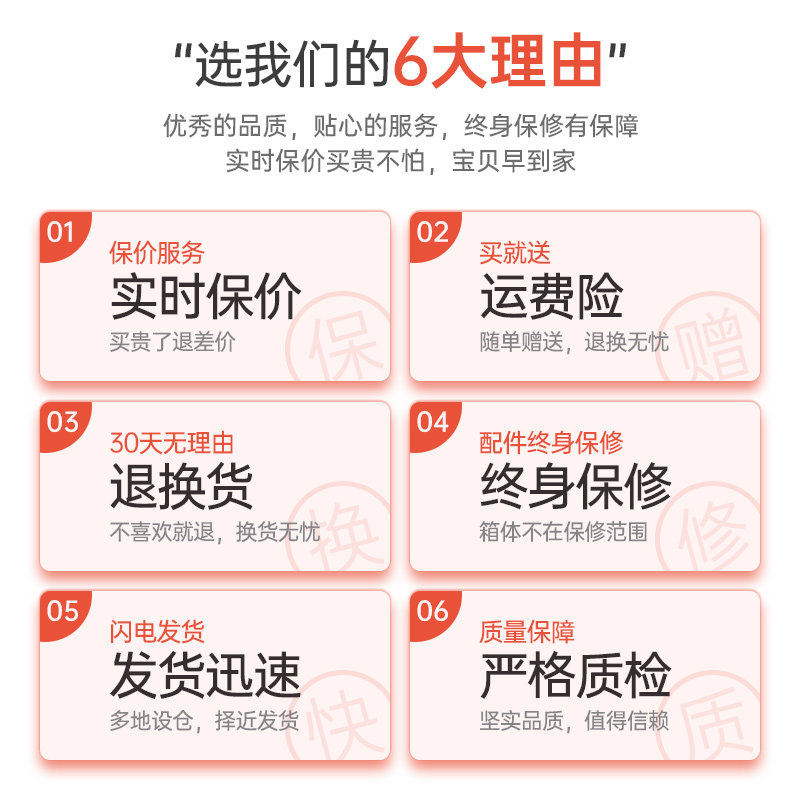 20 inch (suitable for 1-2 days short trip, brand warranty, lifetime warranty) 22 inch (suitable for 2-3 days short trip, brand warranty and lifetime warranty) 24 inch (suitable for 3-