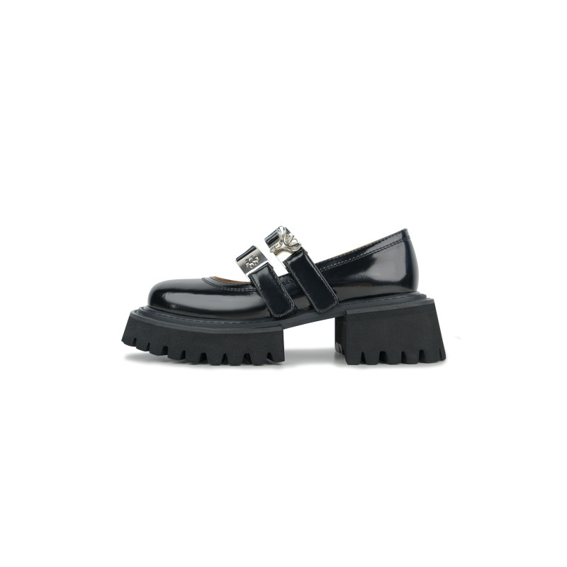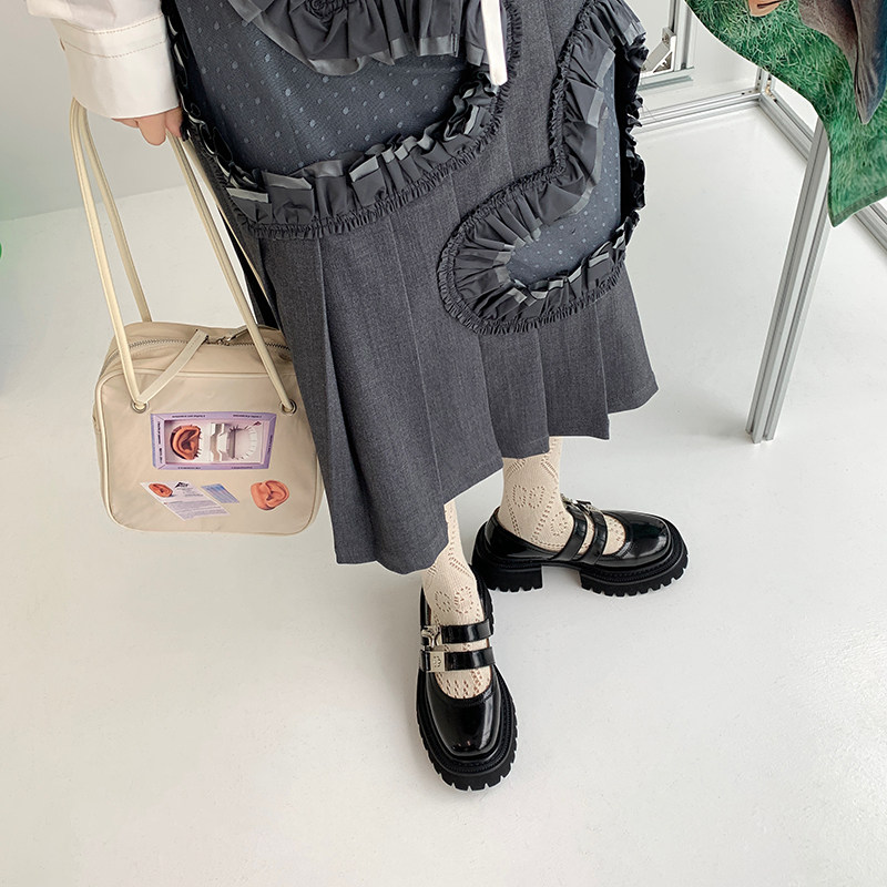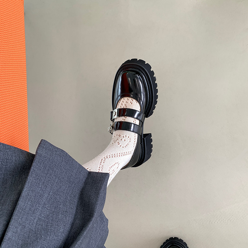 Pine Cake Thick Bottom Genuine Leather Mary Rare Lego Shoes Women 2022 Spring New Heightening Rough Heel College Wind Small Leather Shoes
