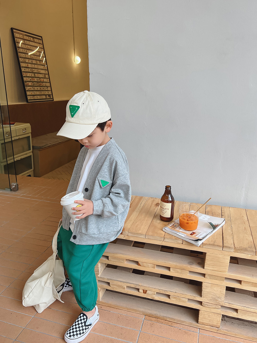 iwan home Ivan children's clothing 2022 spring dress new boy comfort triangular mark sweater cardigan 100 hitch blouse