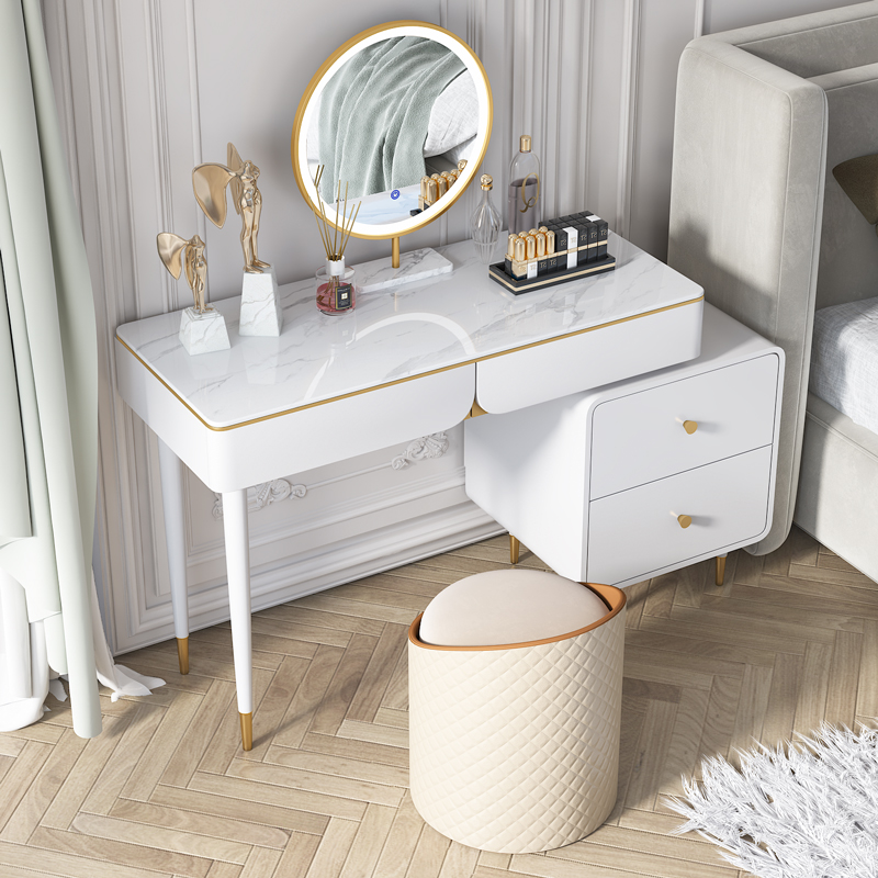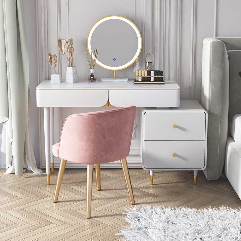 Makeup Desk Bedroom Modern Minimalist Accommodating Cabinet Integrated Light Lavish Makeup Bench Small Solid Wood Dins Wind Makeup Table