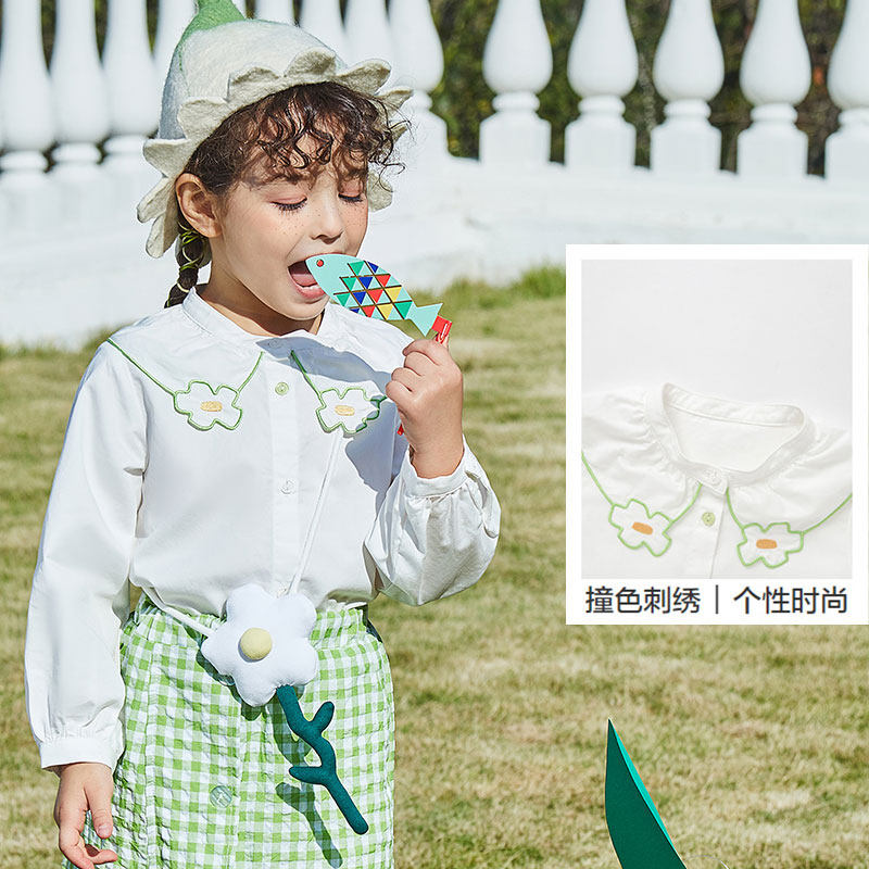 Barabara girls long-sleeved shirt children's baby white shirt children's top 2022 autumn new children's clothing