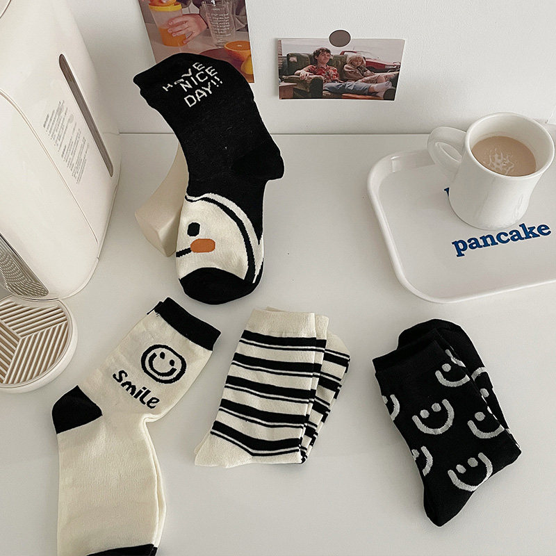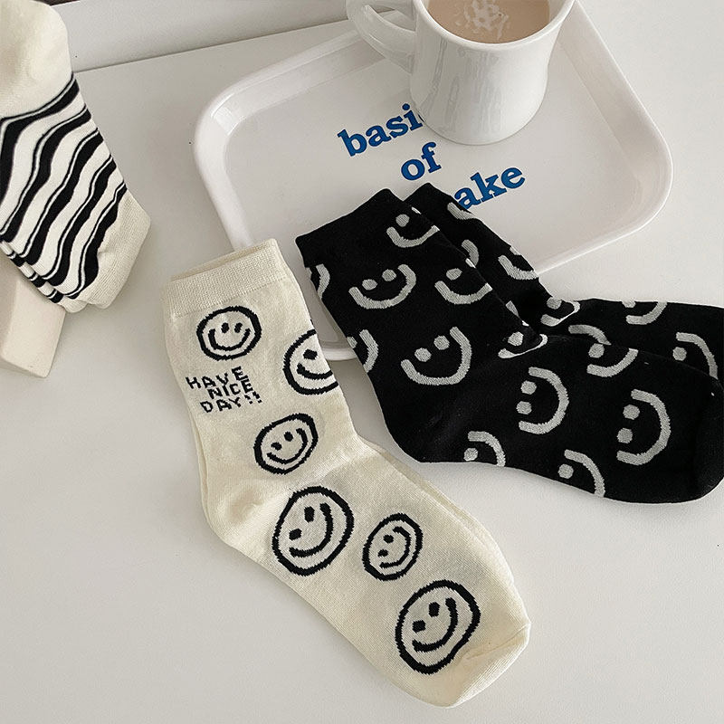 Nut Mommy Middle Skin socks in South Korea Spring and Autumn smiling black cotton wear Japanese stockings