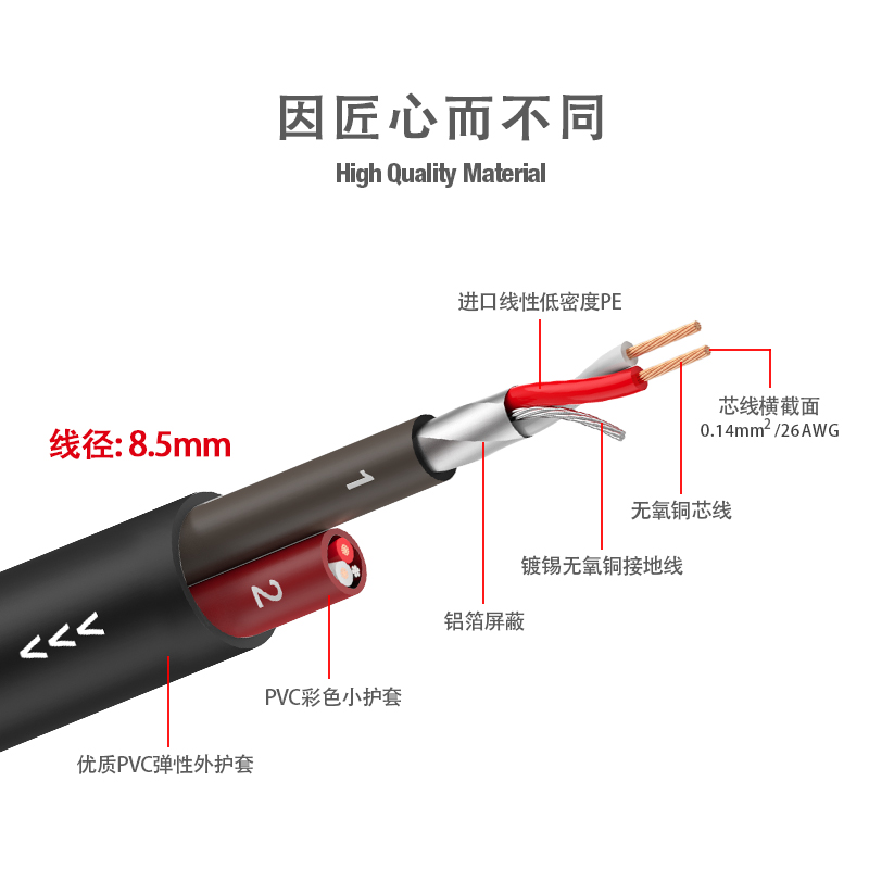 Rockstone one point two Y-type cannon male and female microphone microphone line double spell AV conversion signal line can be customized
