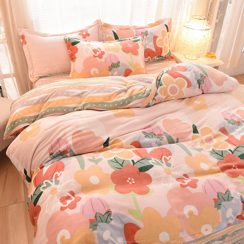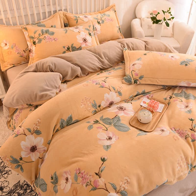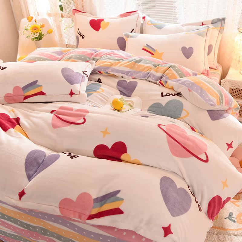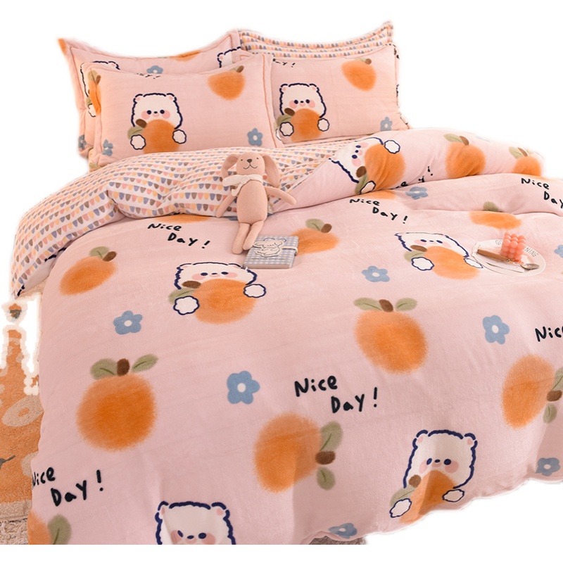 Luxury Fuanna four-piece set of milk velvet thickened coral velvet double-sided winter thickened Falai velvet bed cover children 2m