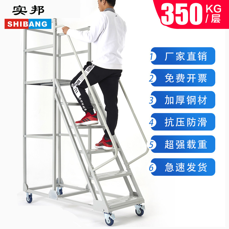 Real State Nanning mobile platform Denheight garage room shelving high ladder mute wheel shelving ladder warehouse taking stock stool