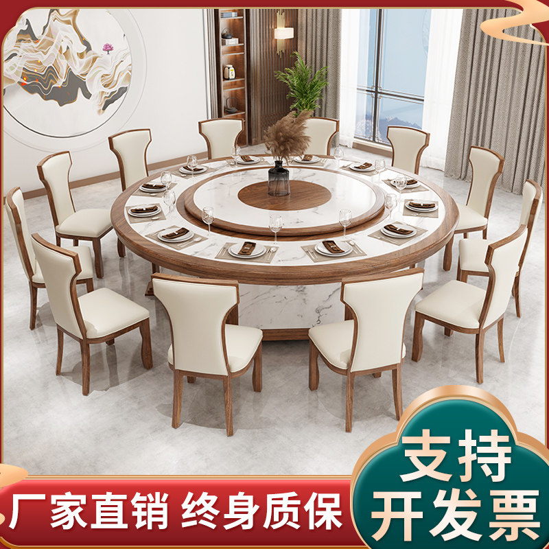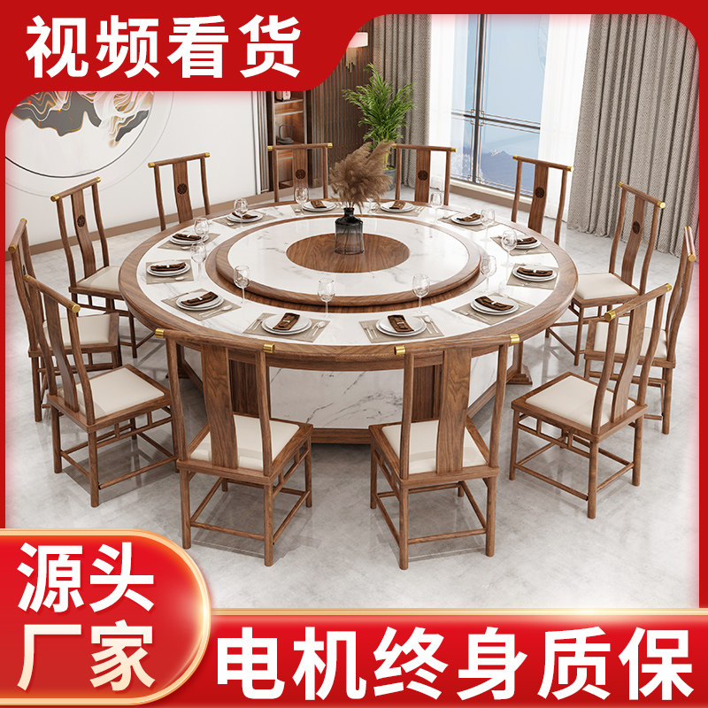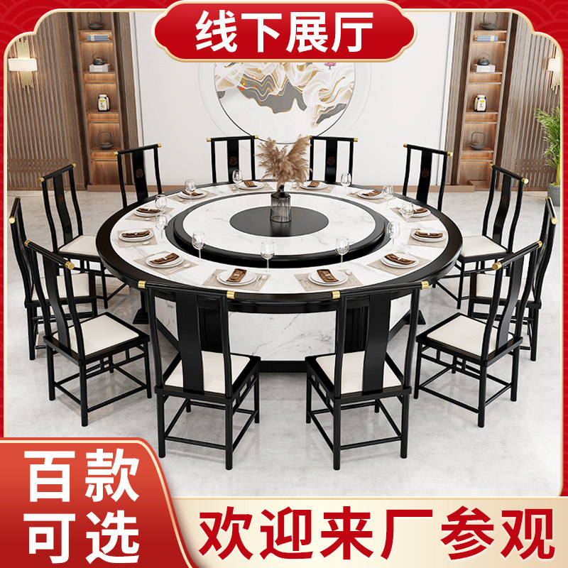 New Chinese-style hotel electric dining table large round table dining room hotel box 15 people 20 people automatic rotating table and chair combination