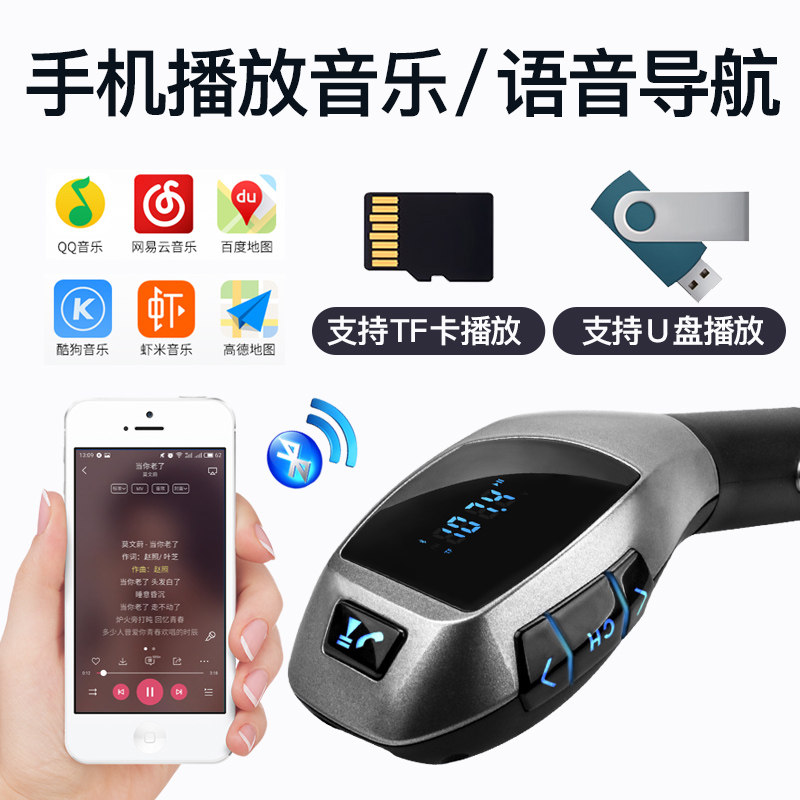 x5 car mp3 bluetooth player music receiver hands-free FM transmitter cigarette lighter mobile phone charger