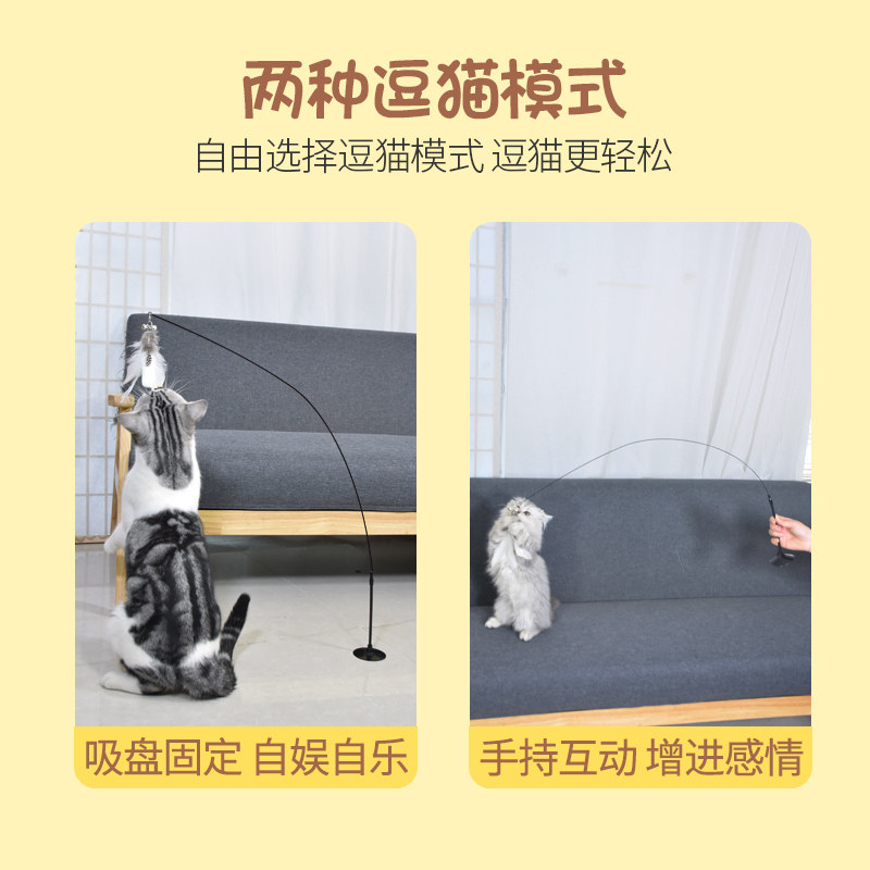 Funny cat stick self-hi 2021 new steel wire rod replacement head cat toy feather with bell bite-resistant cat supplies