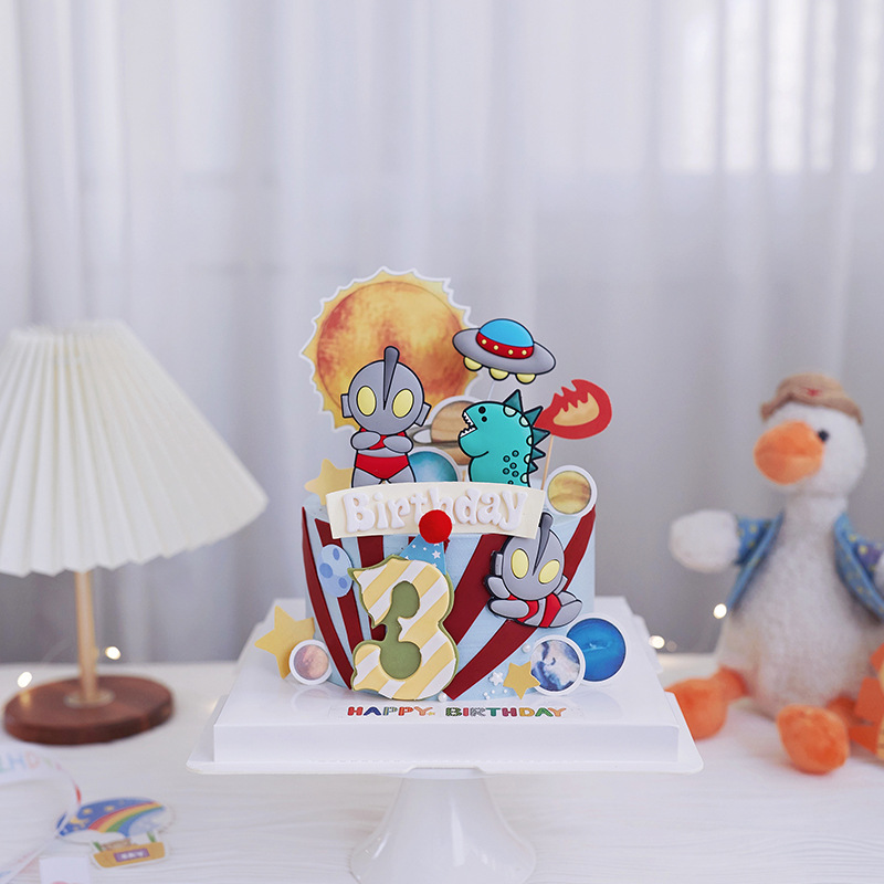 Altman plays Monster Boy Birthday Cake Decorates Spacecraft Planet Creative Children Baking Dessert Plugin