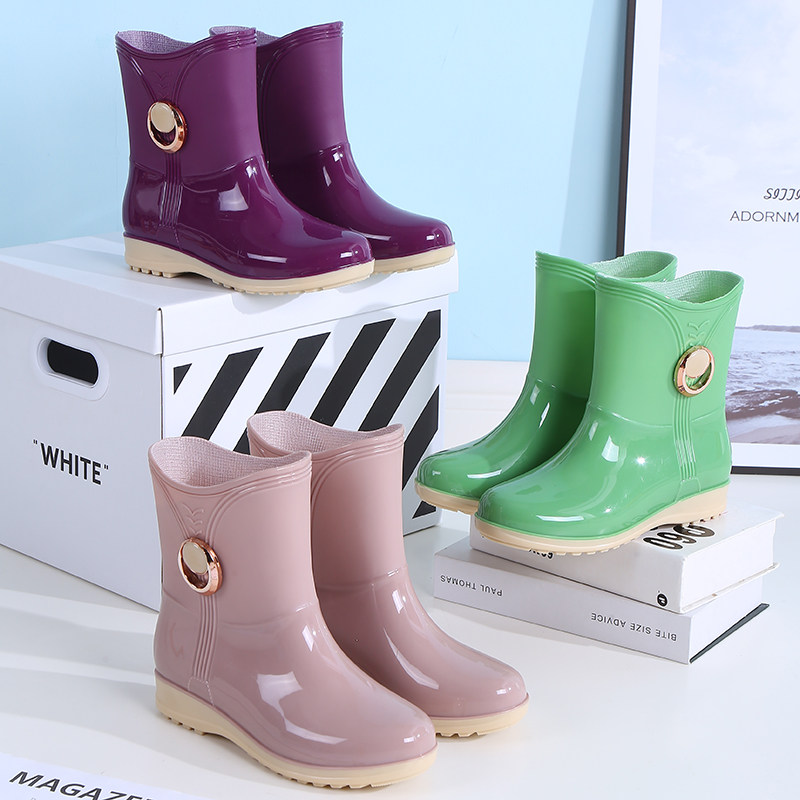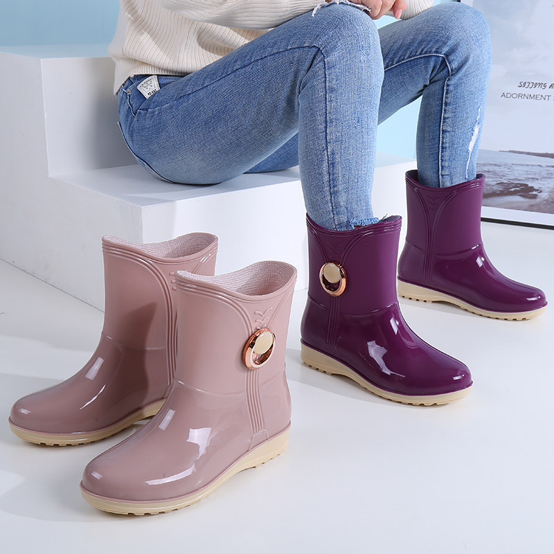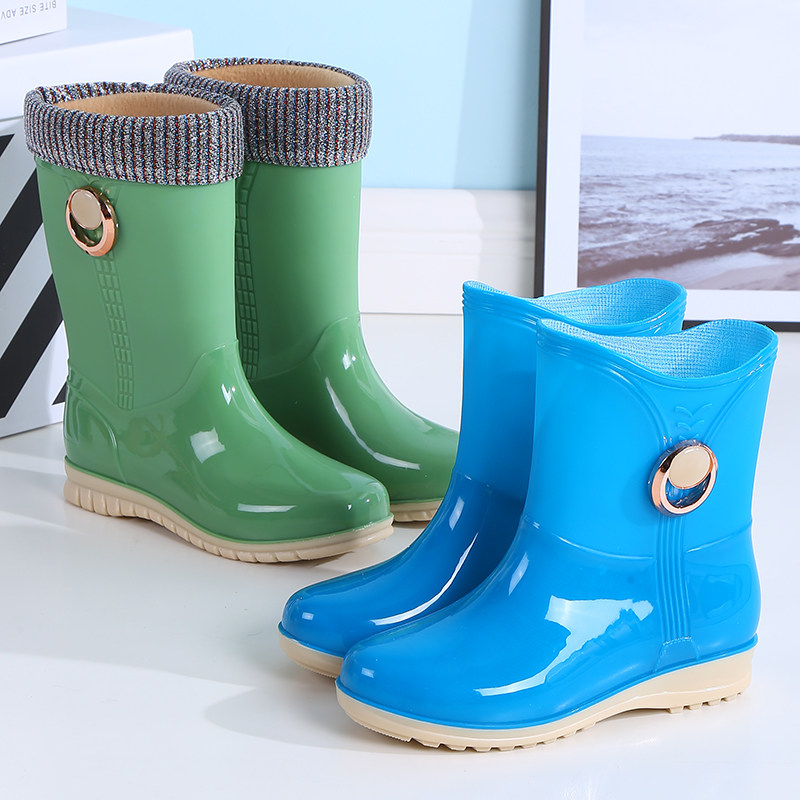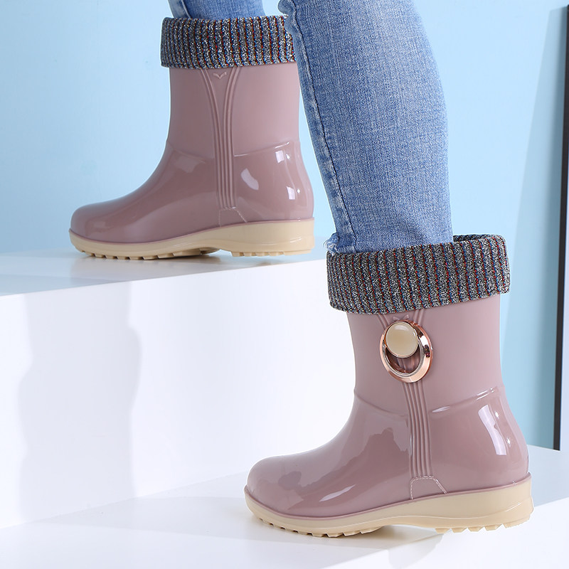 Fashion High Cylinder Ladies Water Shoes Non-slip Waterproof Wear Resistant Thick Bottom Four Seasons Long Cylinder Rain Shoes Warm Add Cotton Korean Version Rain Boots