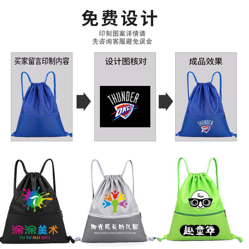 Custom printed logo sports backpack drawstring back backpack student marathon event advertising basketball bag pocket