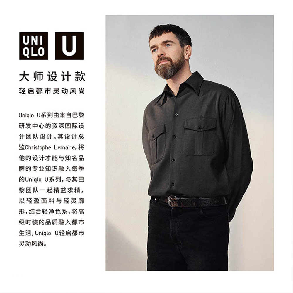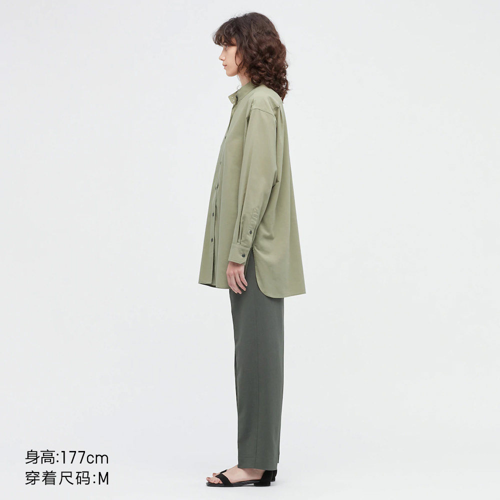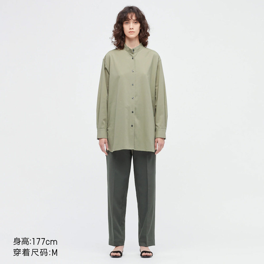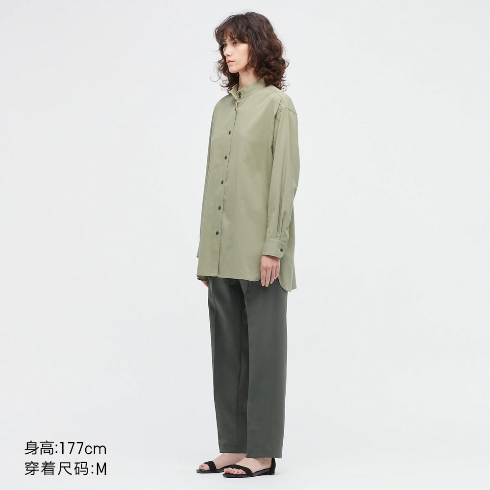 (Cooperative section UNIQLO U) women's clothing men's clothing stand-up, long shirts full cotton grass wood green 447436