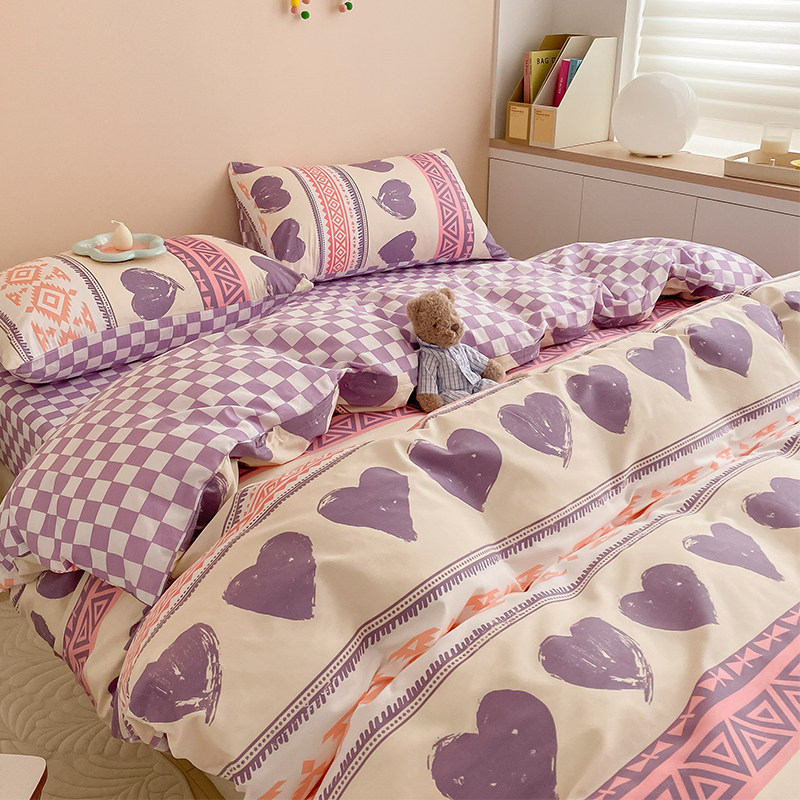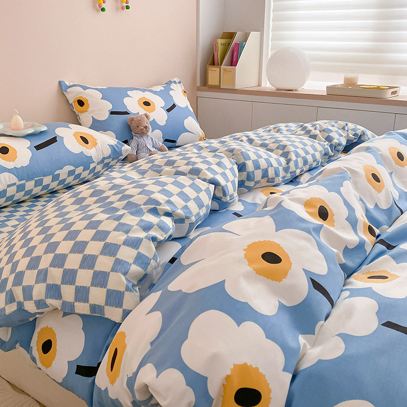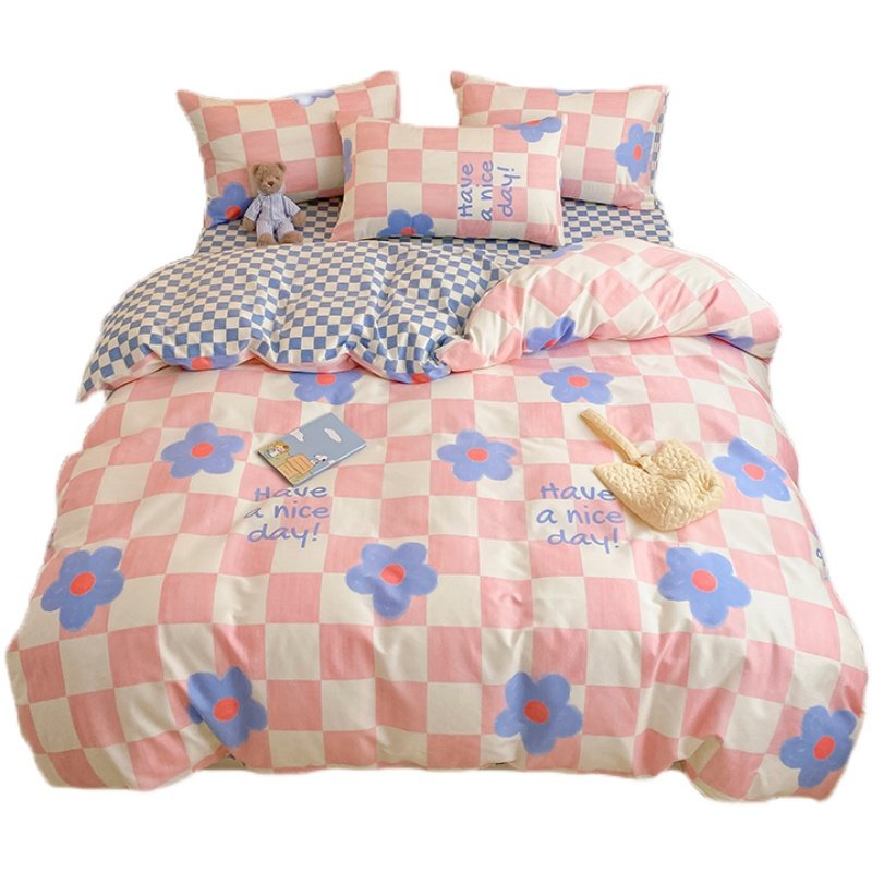 ins Han Department Chessboard Lattice Flowers Pure Cotton Four Pieces Teenage Girl Hearts Full Cotton Student Bed Three Sets Cute Bed Products