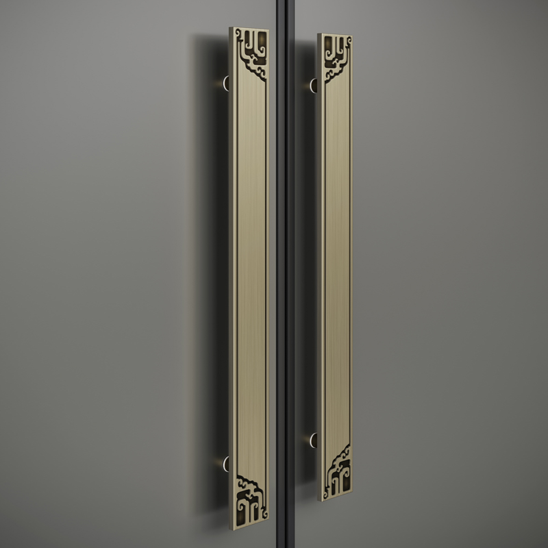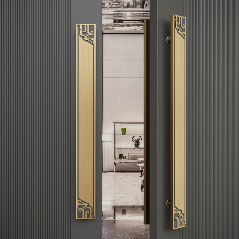Chinese style glass door handle custom logo lettering hotel conference room private room solid wood door handle minimalist bronze