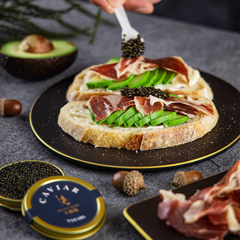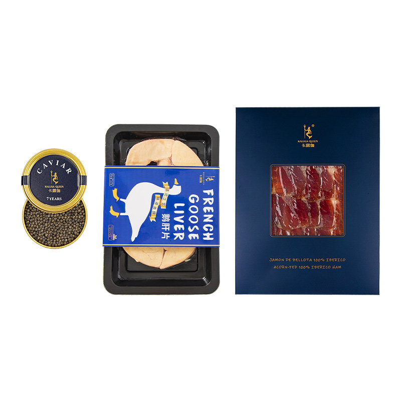 Caruga Year's Eve dinner gift package 7 years raw caviar 30g foie gras 200g Spain Iberian ham 50g