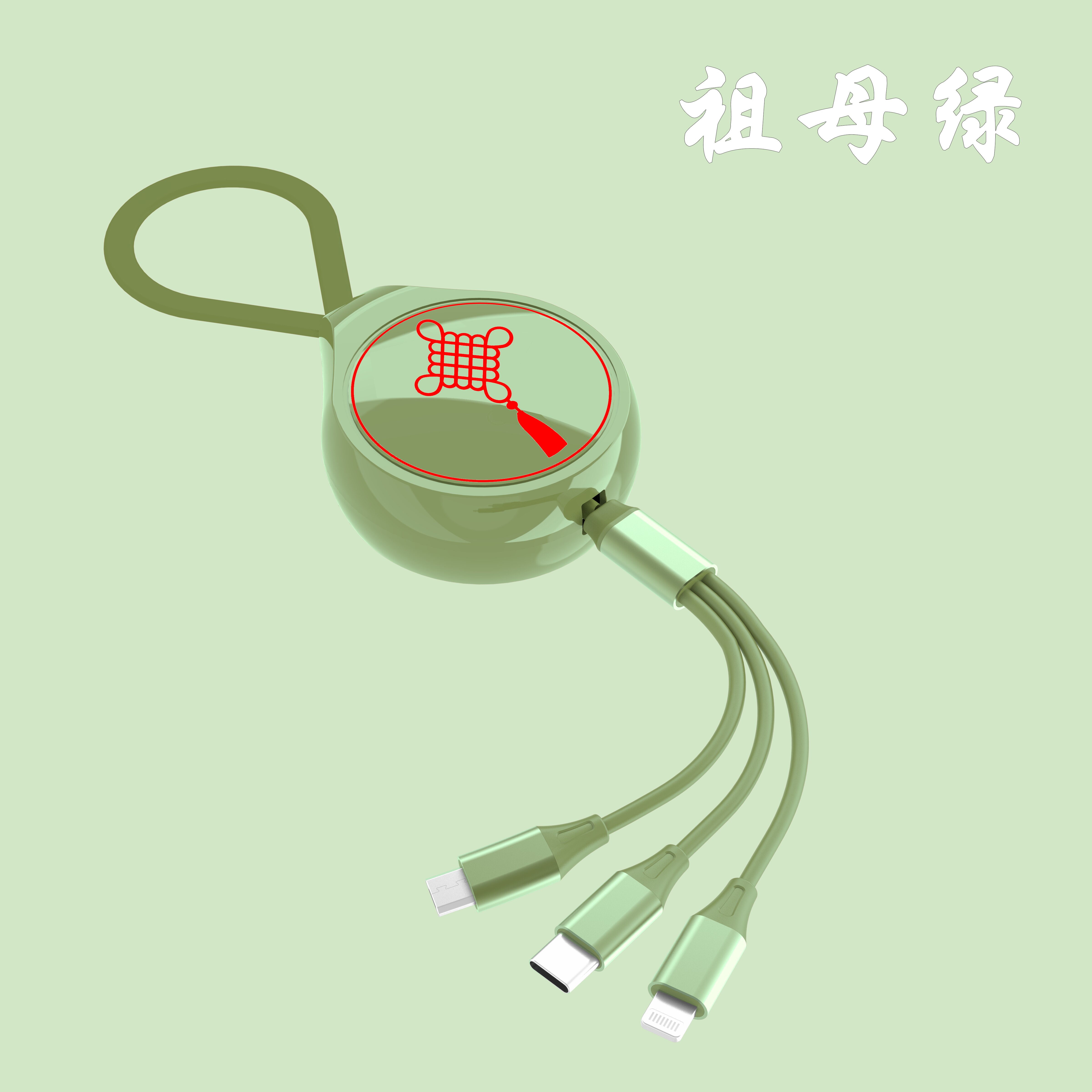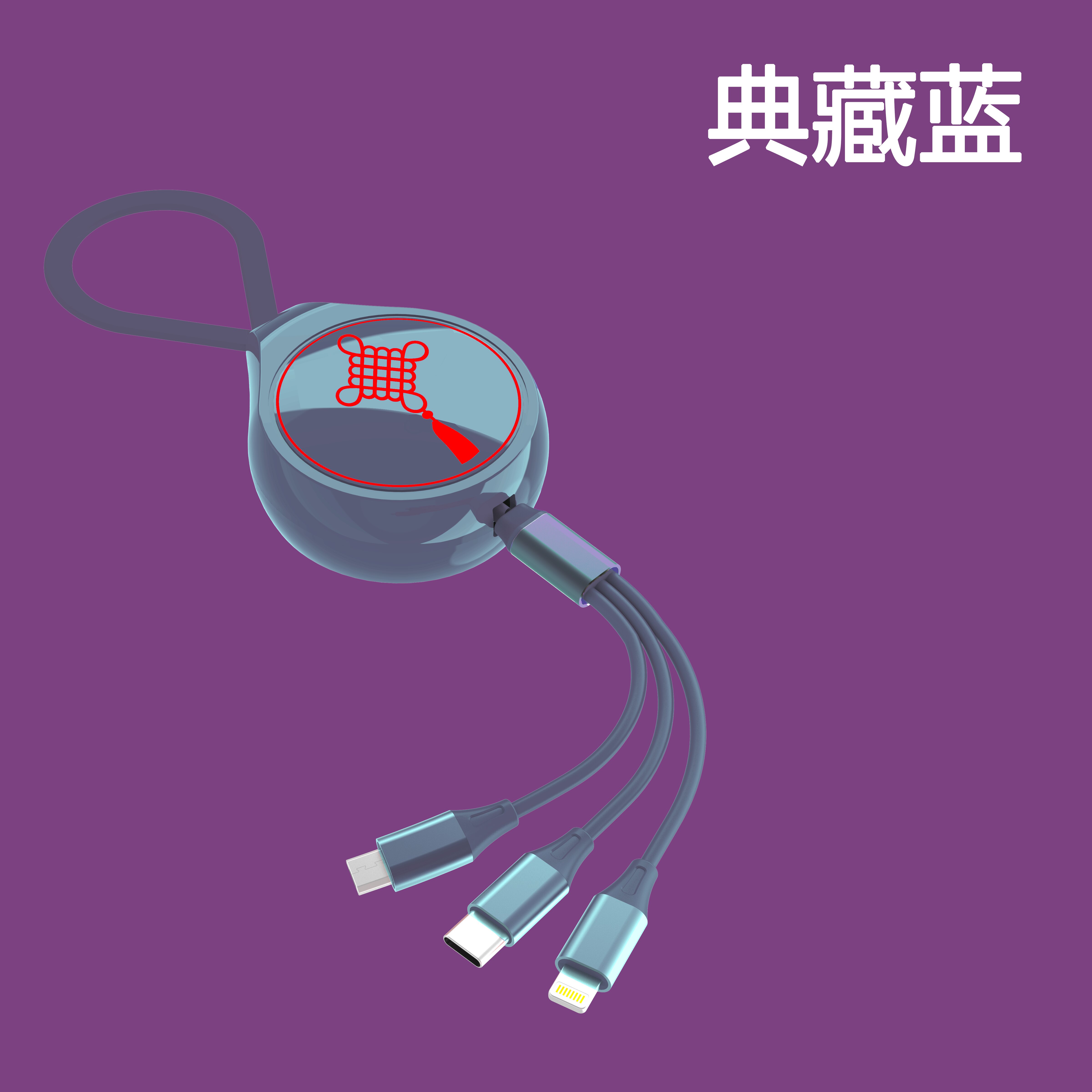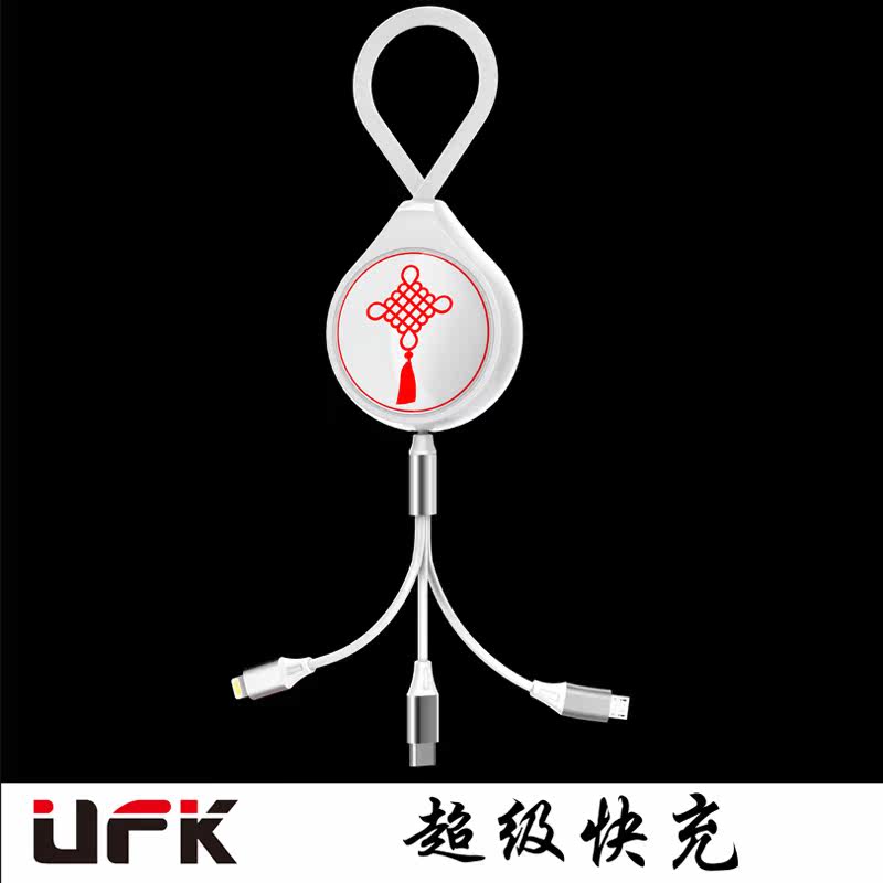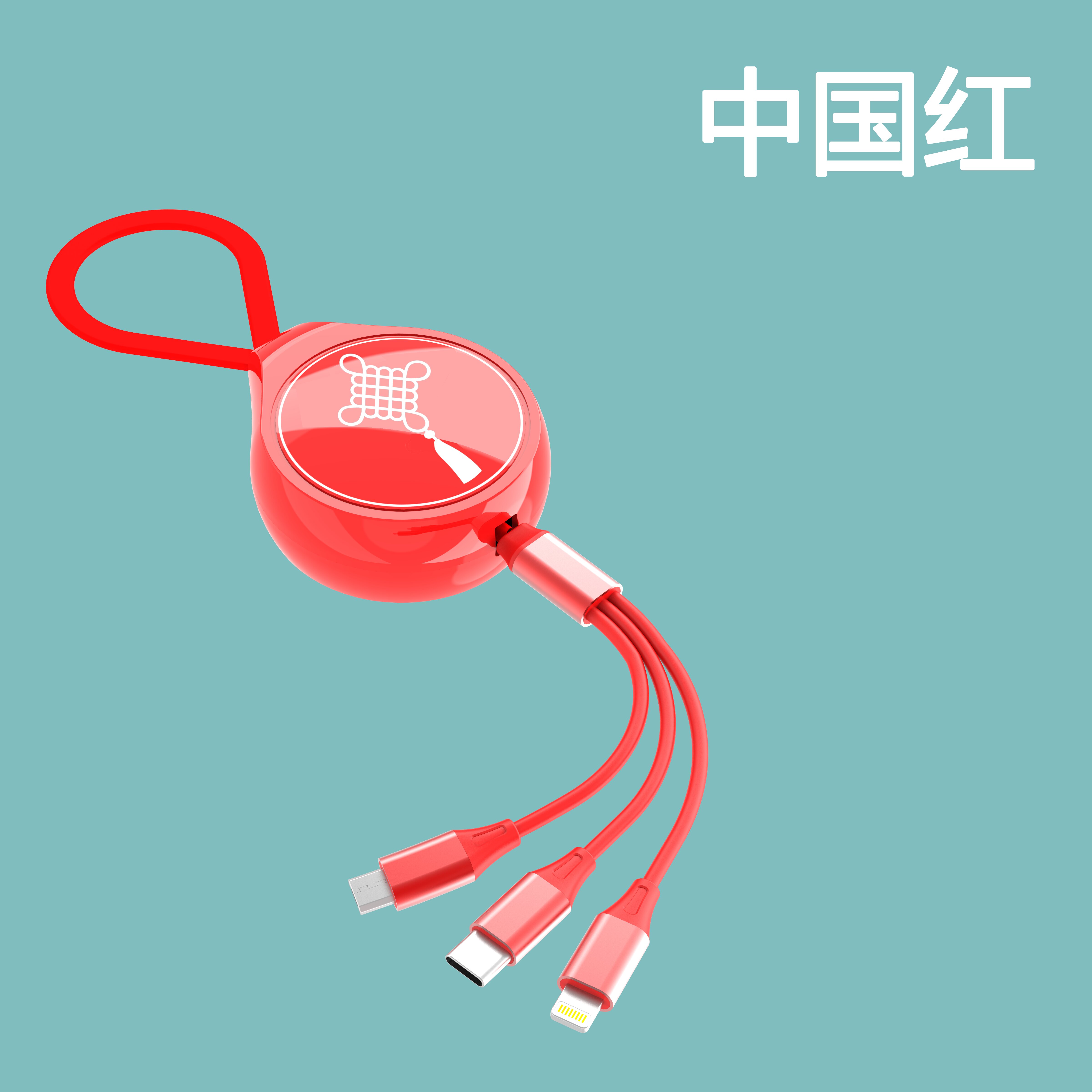 China knot three-in-one 5A super fast charging data line tiger year gift Typec flash charge applicable Apple Android mobile phone Huawei one drag triple charge line telescopic mobile phone vehicle multifunction universal