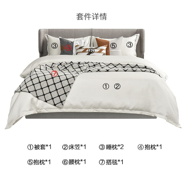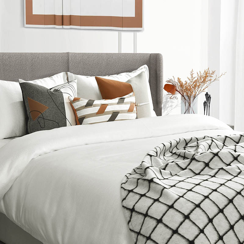 Modern rice white orange coffee color exhibition hall model room bedding light luxury soft decoration model room bedding pillows and blankets