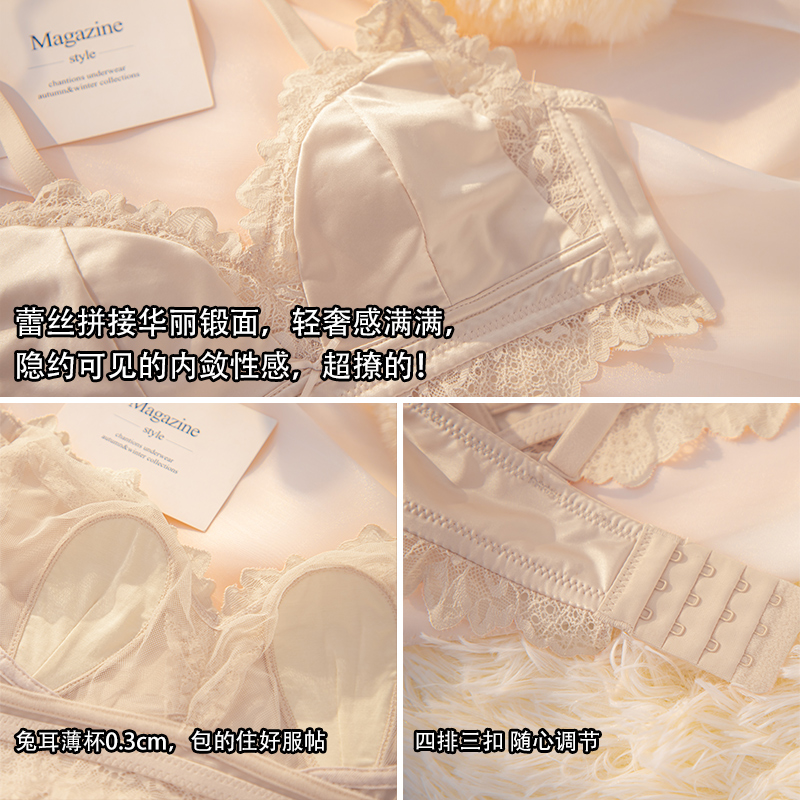 Summer lingerie female large breasts with small ultra-thin slim fit style no steel ring to collect auxiliary milk drooping and comfortable lace small cute hood