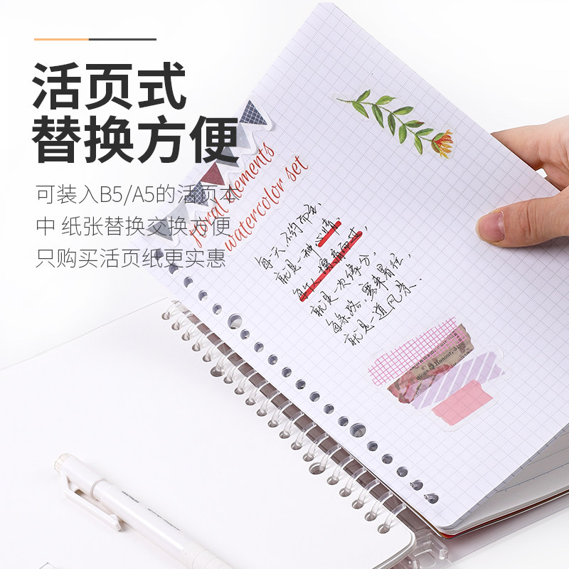 Narrow line 7mm horizontal working page simply in wind large capacity clip notebook for core B5 26 holes live page can tear grid inner page coil of the paper substrate