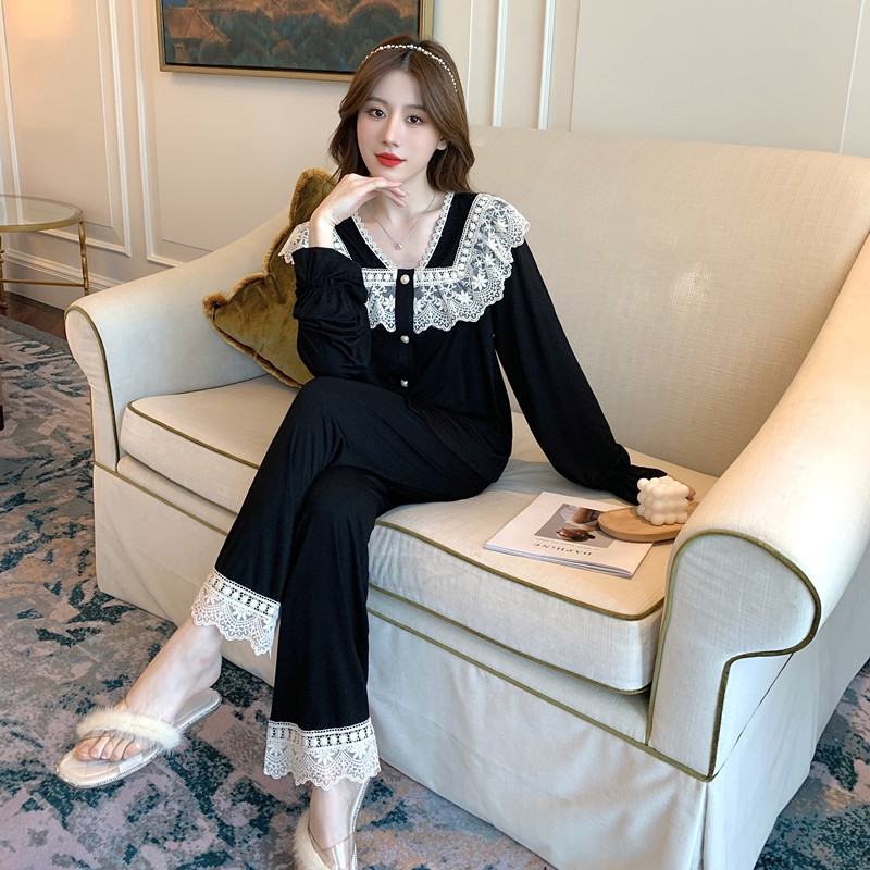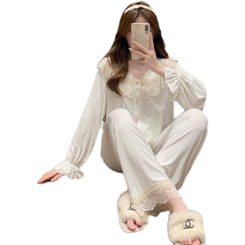 Modale Spring Autumn Season Pure Cotton Pyjamas Woman Long Sleeve Sexy Floral Lace Sweet Beauty Outside Wearing Two Sets of Home Suits Suit-Taobao