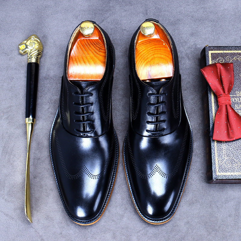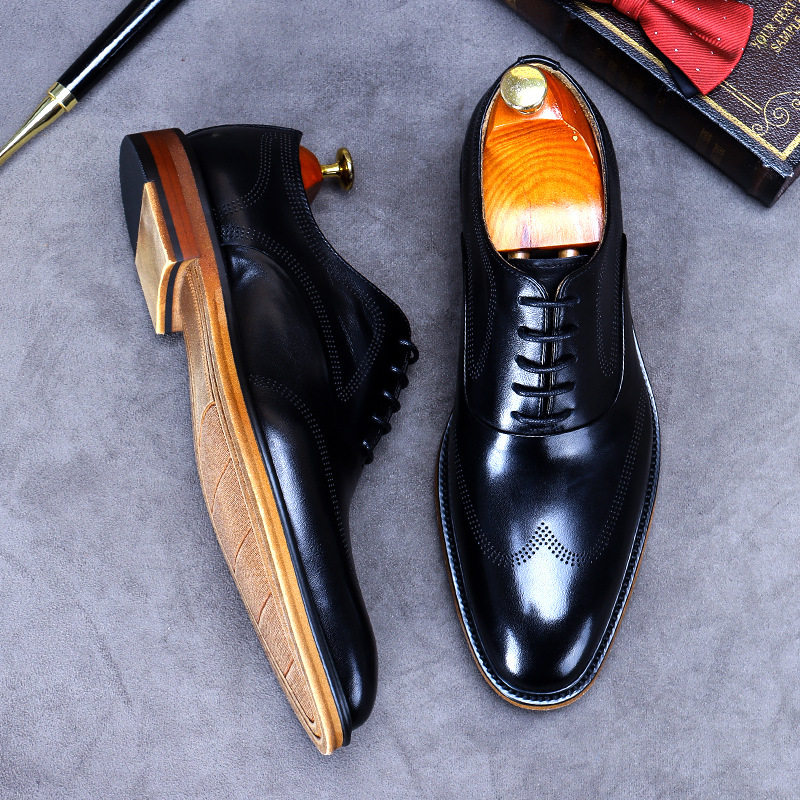 High - end retro - business dress shoes men 2022 new casual soft bull leather English light luxury breathable men's shoes