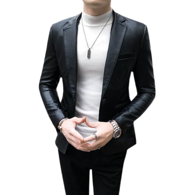 Genuine leather jacket men's jacket trendy handsome ruffian handsome suit leather business casual men's motorcycle jacket winter