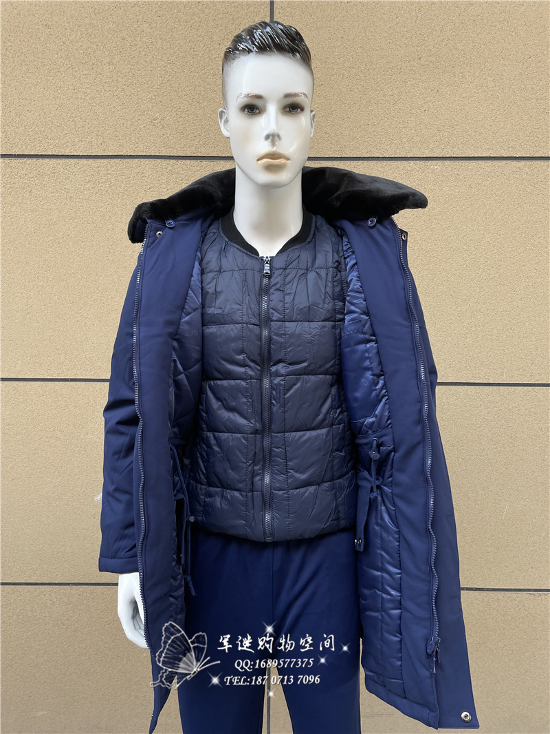 New fire preparedness cotton coat blue full-time winter heating cotton clothing medium and long-term cold protection suit men
