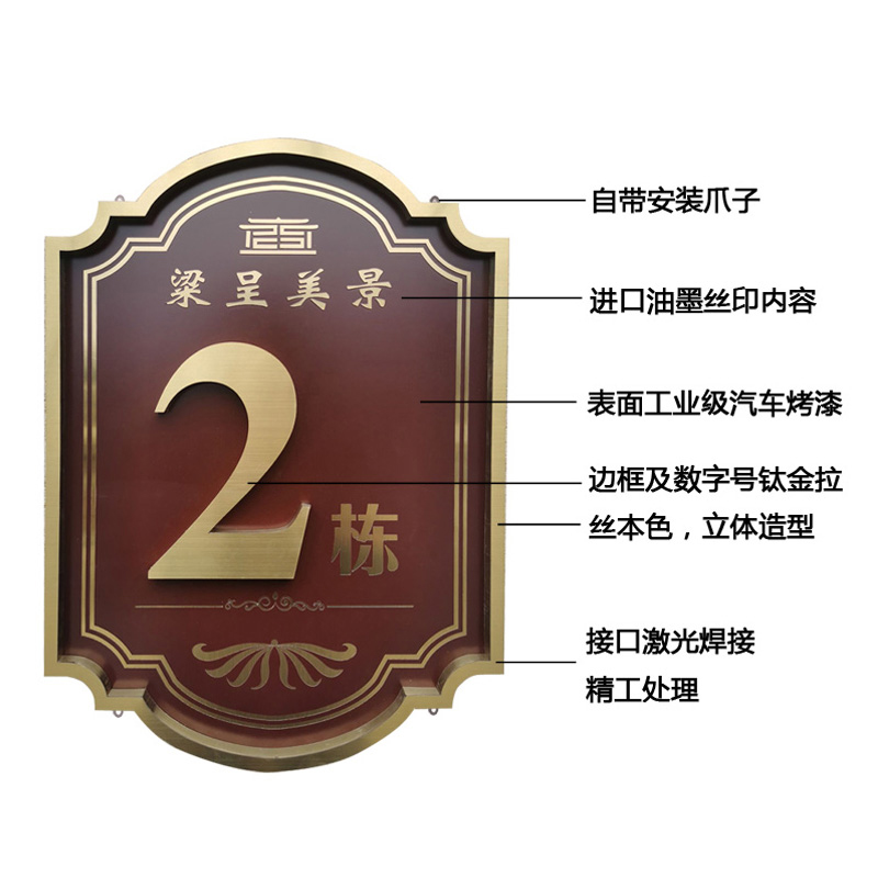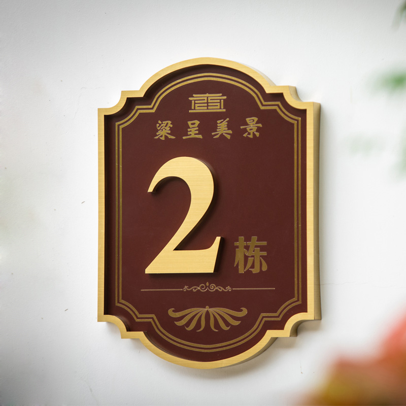 Building Card Custom Building Number of upscale Stainless Steel Titanium Alloy Wire Drawing Real Estate Community Unit Floor Logo Signs Cards