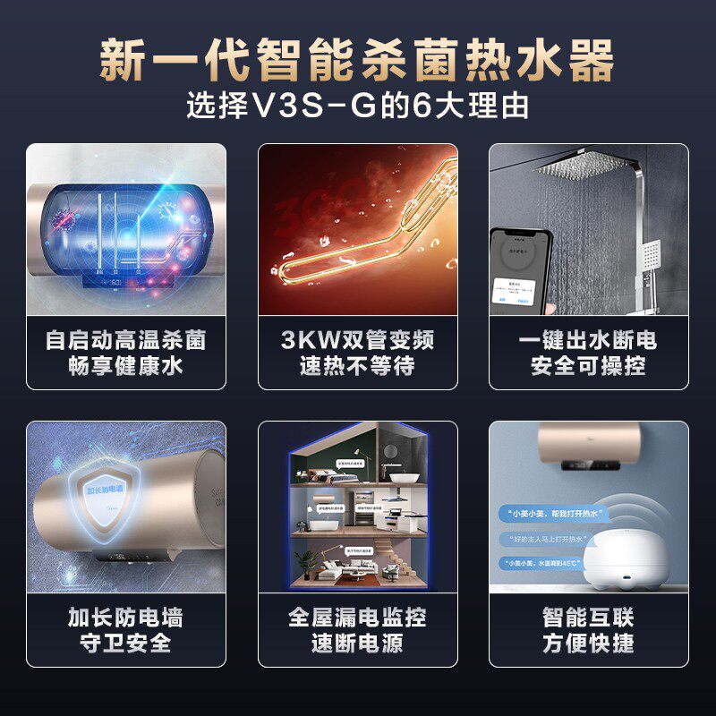 Beauty 80L electric water heater V3S-G electric home makeup room speed hot water cut off smart home appliances bath 60 liters
