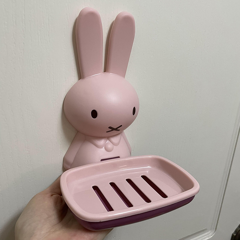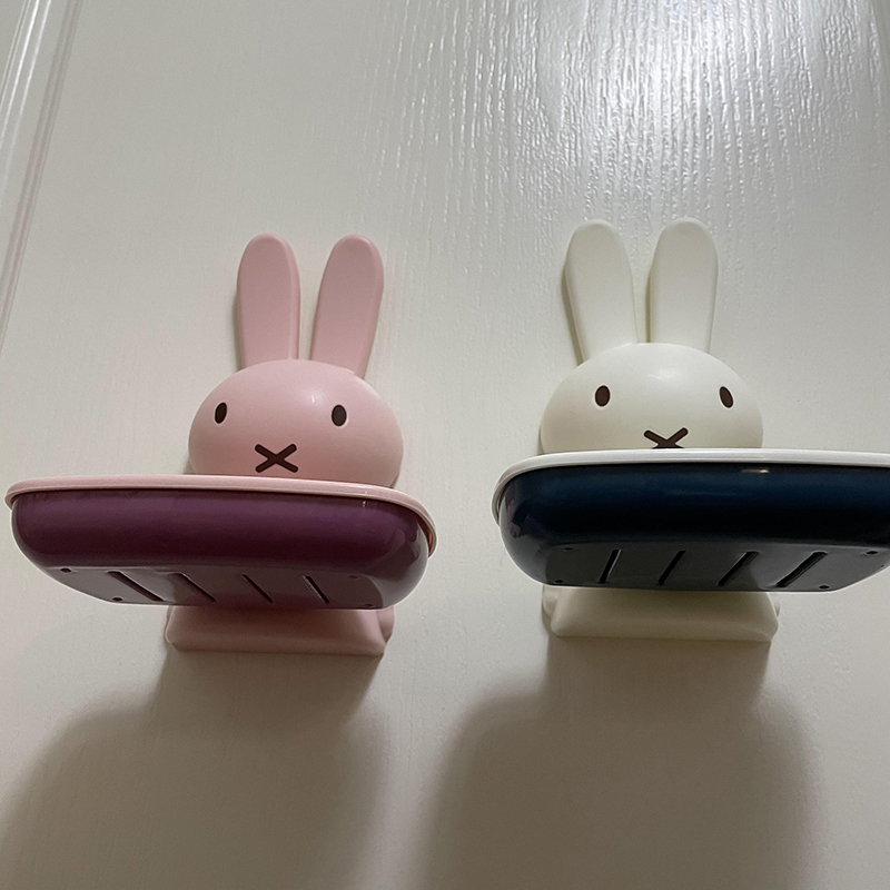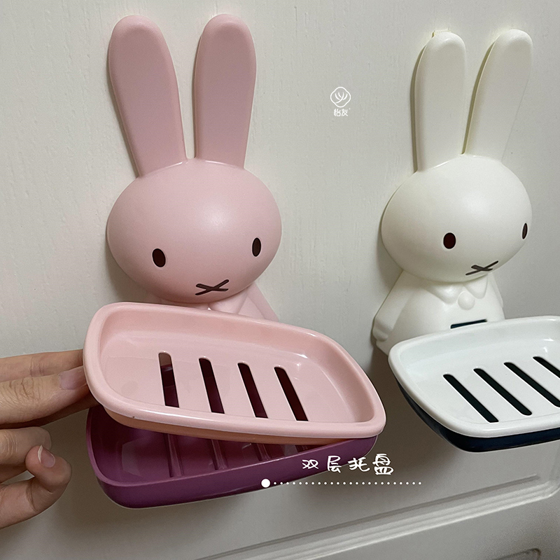 Cartoon cute big head rabbit soap box free punching bathroom kitchen paste soap box suction cup wall hanging storage