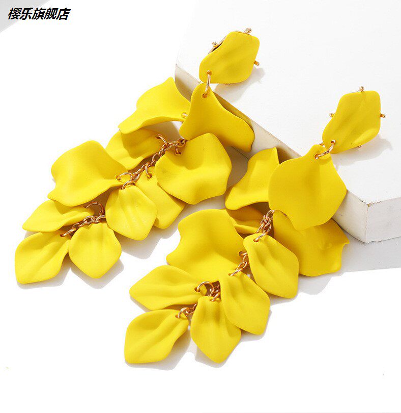 Trendy New Products Fashion Hyperbolic Rose Petals Leaf Long Version Earrings Red Petals Ears Pendant Korean Version Ear Accessories New