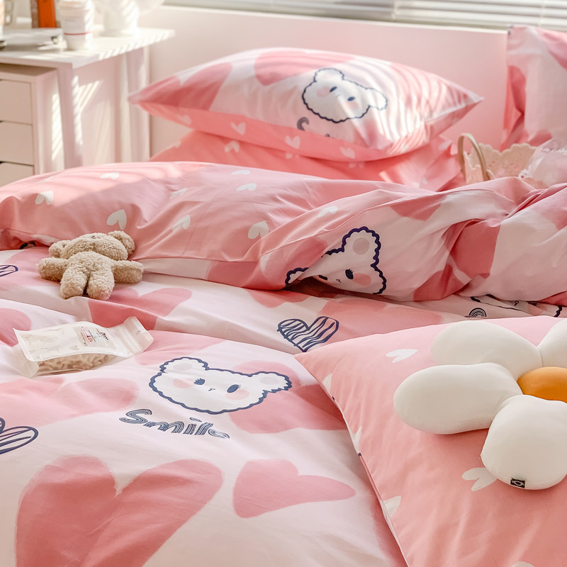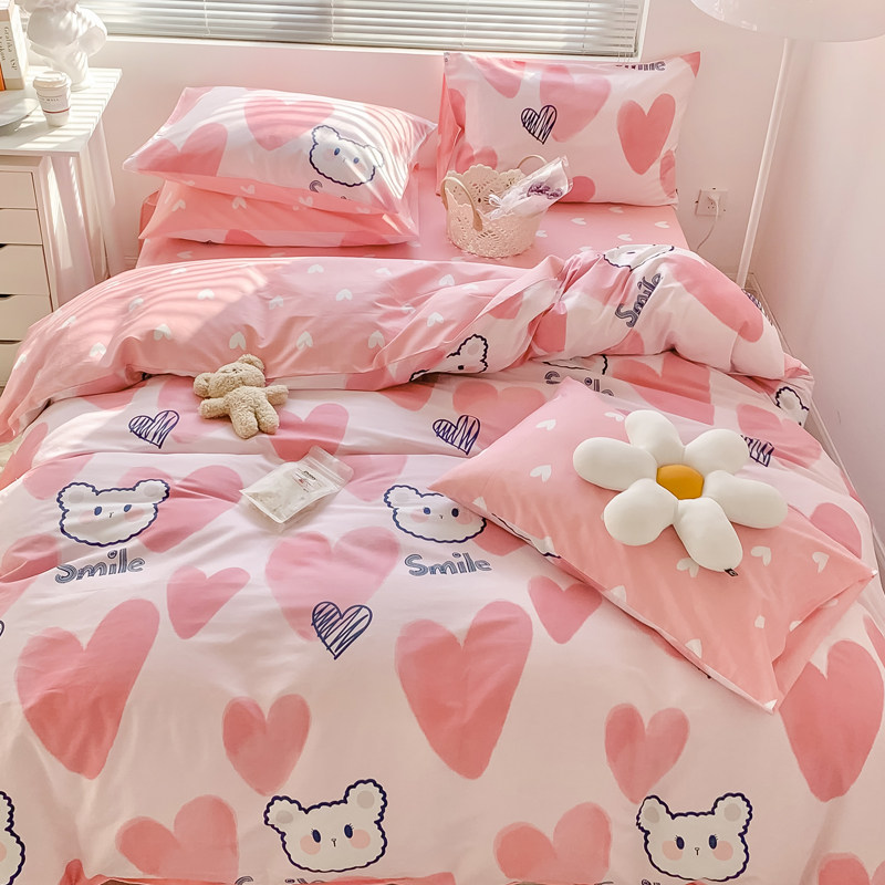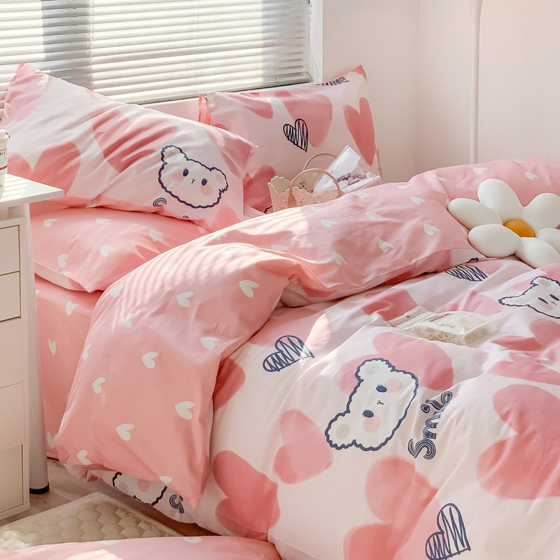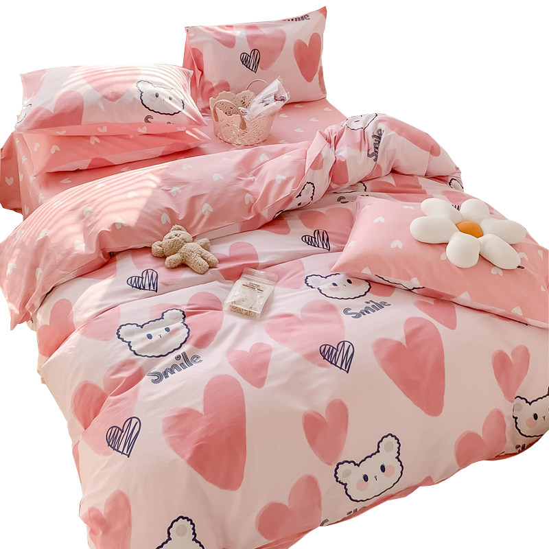 Girl Cartoon All Cotton Four Pieces of Cotton Bed Bed in a Student Dormitory Single Double Twin Three Pieces