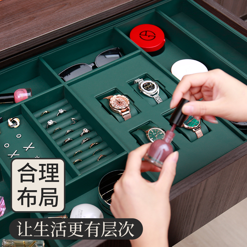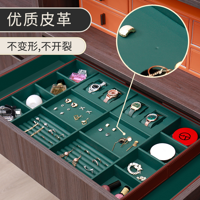 European jewelry storage box wardrobe cloakroom drawer high-grade leather partition jewelry watch tray can be customized