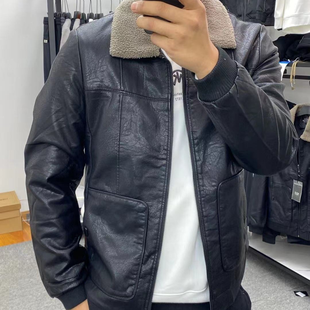 Zhang Gongzi men's clothing store 20-1 hot style high-quality washed soft leather jacket (with velvet and thickening)